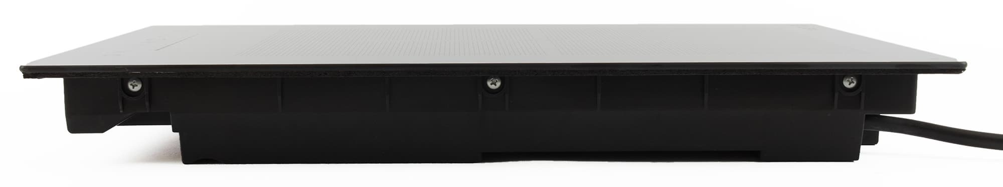 Под стеклокерамической поверхностью находится пластиковый корпус высотой 6 см. Благодаря этому прибор не требует заземления.