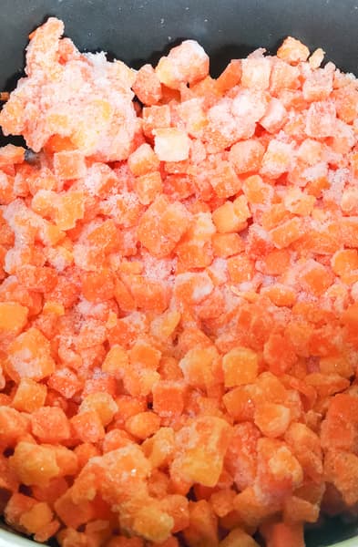 Для каши мы взяли 2 пачки замороженной тыквы и круглозерный рис.