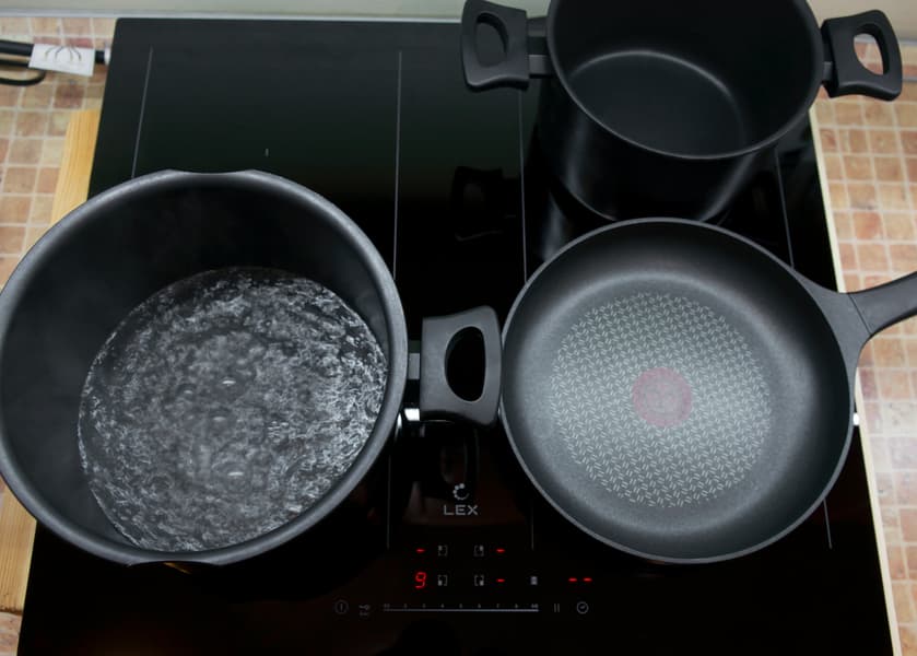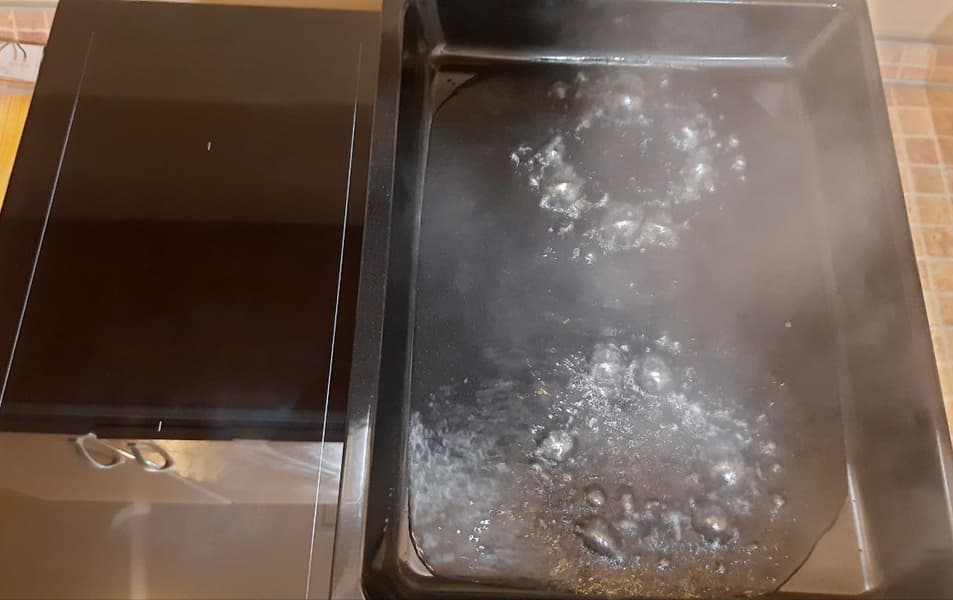 На ближней правой конфорке в режиме Boost в кастрюле с закрытой крышкой 1 литр воды температурой 20 °C вскипел за 6,5 минут. Энергопотребление составило 0,172 кВт·ч.