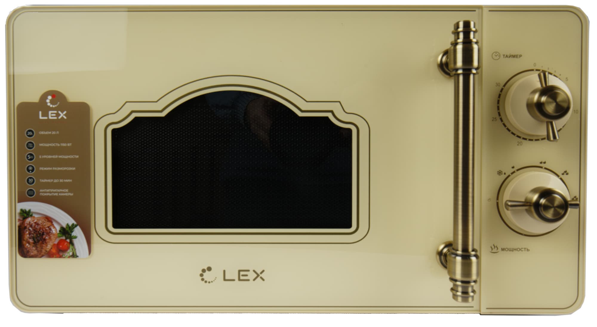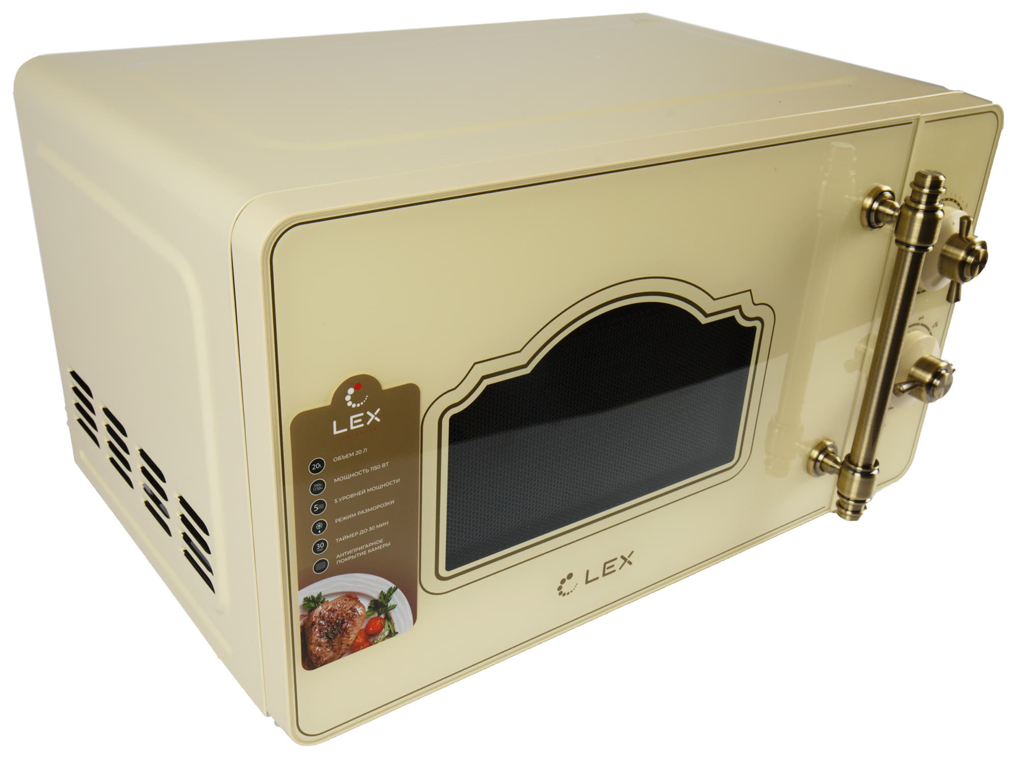 Микроволновая печь Lex FSMO M.03IV из коллекции с говорящим названием Vintage не только оформлена под старину, у нее и функциональность вполне себе ретро: никаких новомодных грилей и конвекций, только старая добрая СВЧ-классика. Давайте познакомимся с ней поближе.