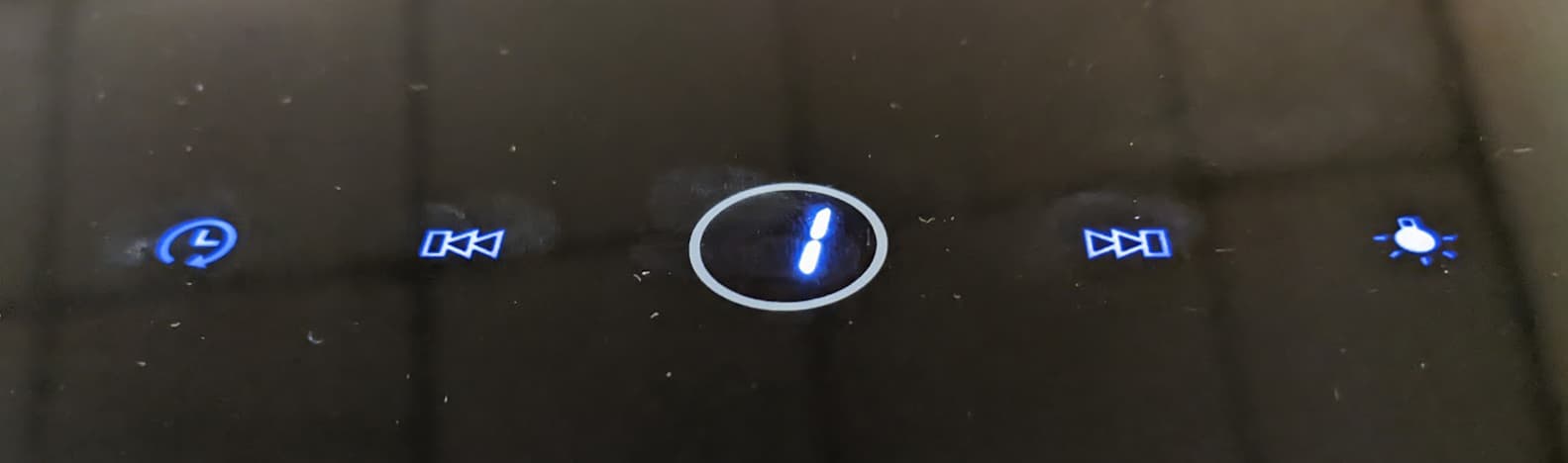 На откидной панели размещается сенсорная панель управления с цифровым дисплеем, отображающим текущий уровень мощности. Она активируется нажатием на кружок в центре экрана.