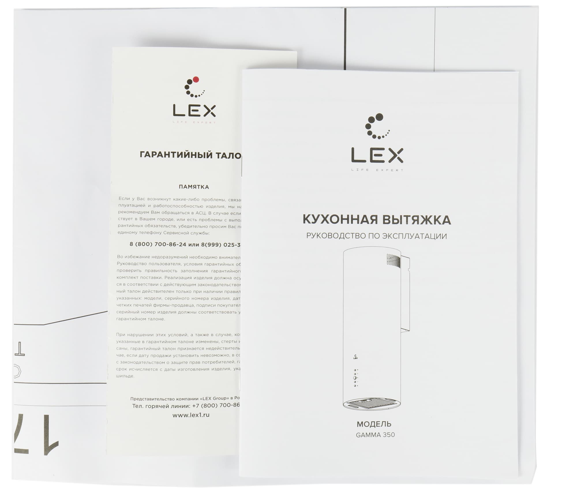 Руководство пользователя — традиционная для вытяжек Lex 32-страничная брошюра формата А5, напечатанная на плотной белой бумаге.