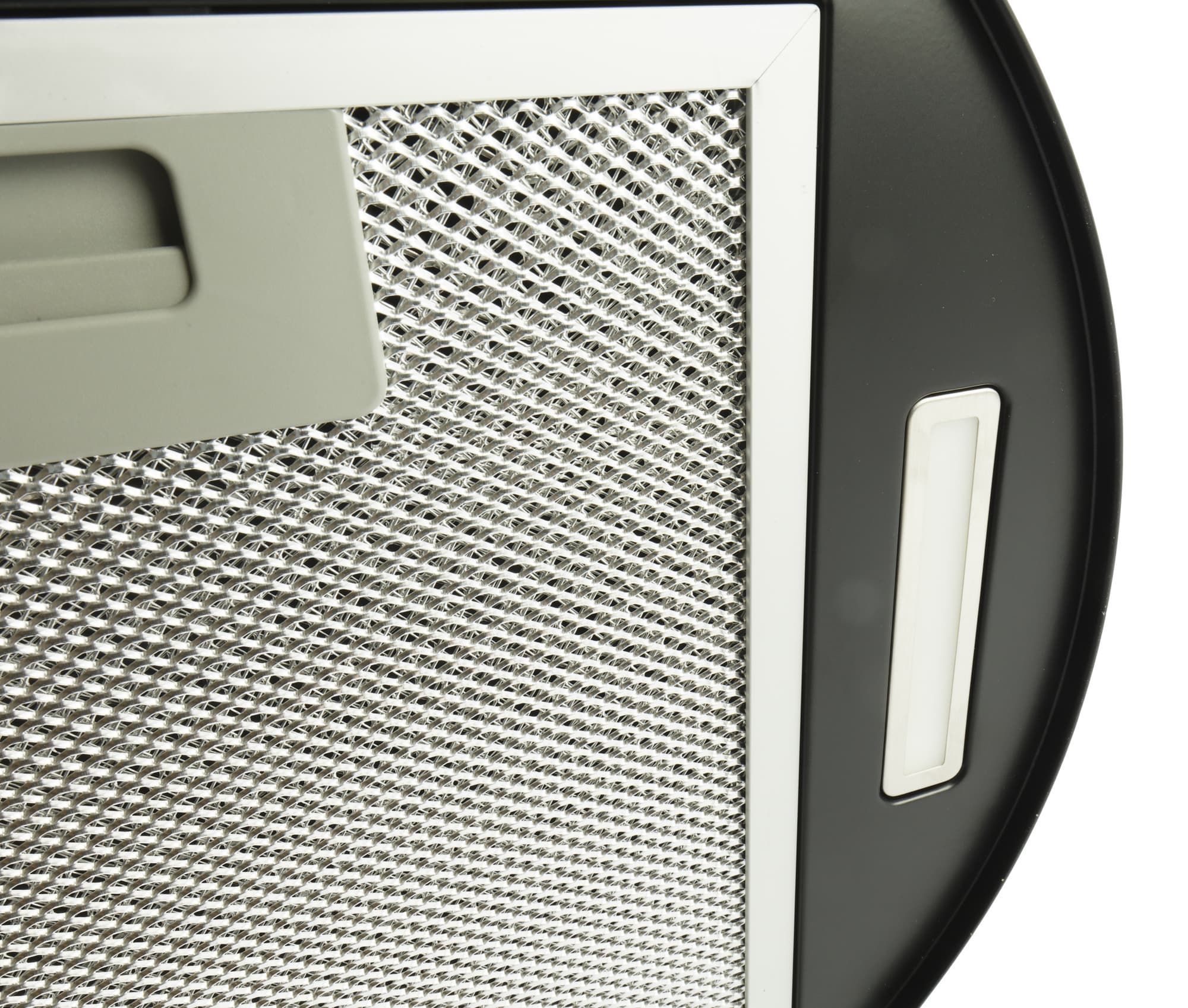 У фильтра традиционная конструкция без каких-либо технологических особенностей: трехмерная алюминиевая сетка, улавливающая капли масла, жира и пыль, закреплена на металлической рамке, которая держится в корпусе благодаря привычной защелке серого цвета.