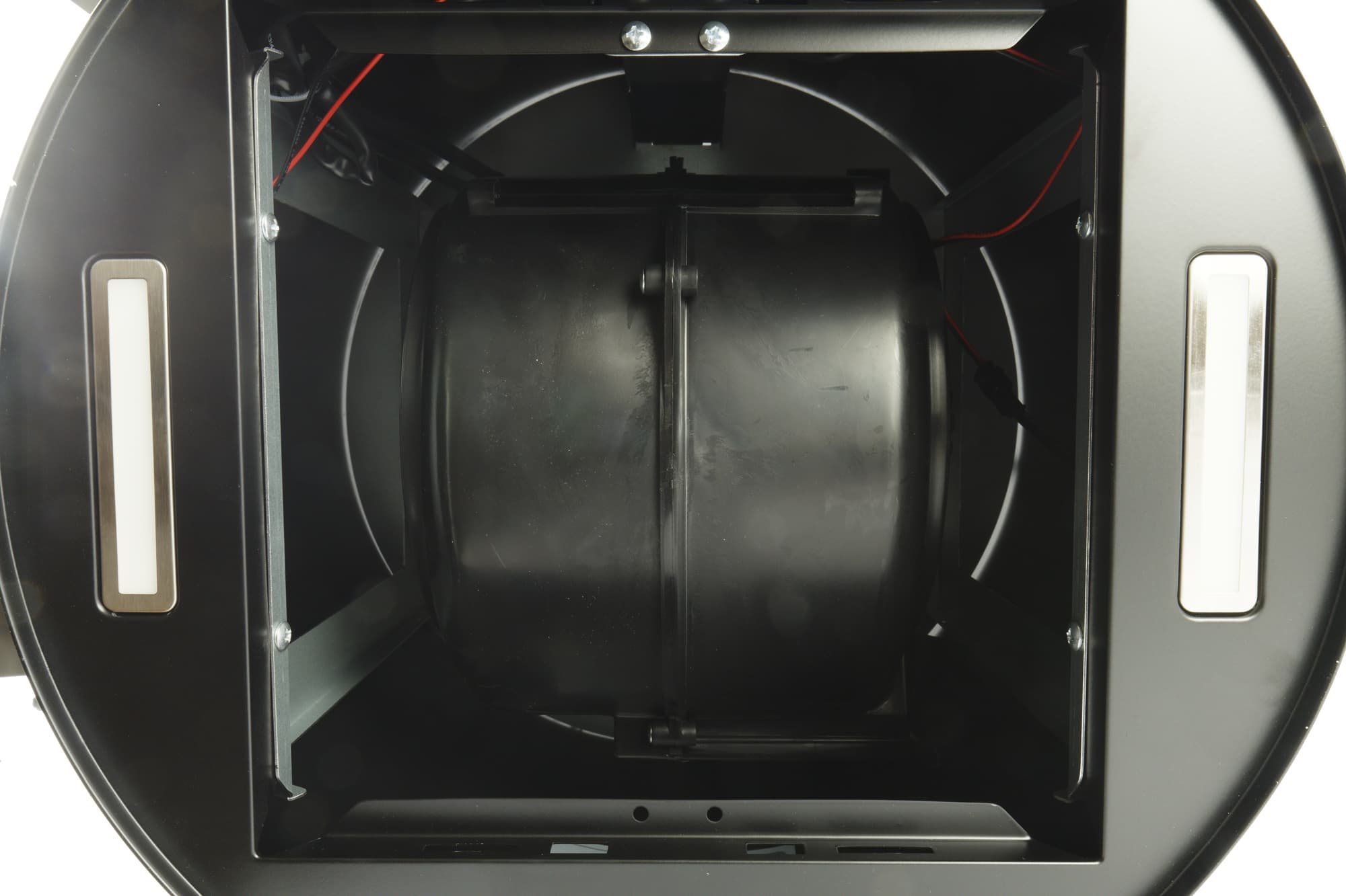 Сняв фильтр, мы получаем доступ к цилиндрическому корпусу вытяжного вентилятора. На его торцах предусмотрено крепление для стандартных угольных фильтров.