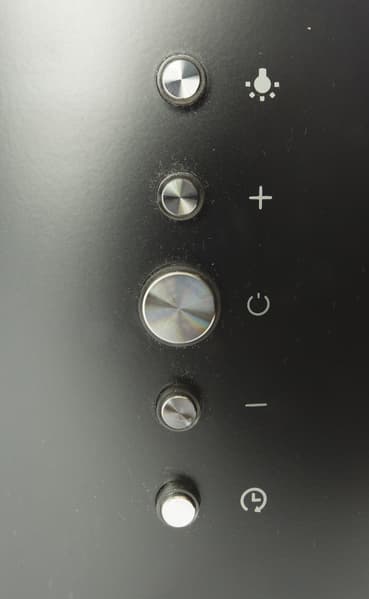 Для управления вытяжкой используются пять механических кнопок на передней стороне цилиндрического корпуса.