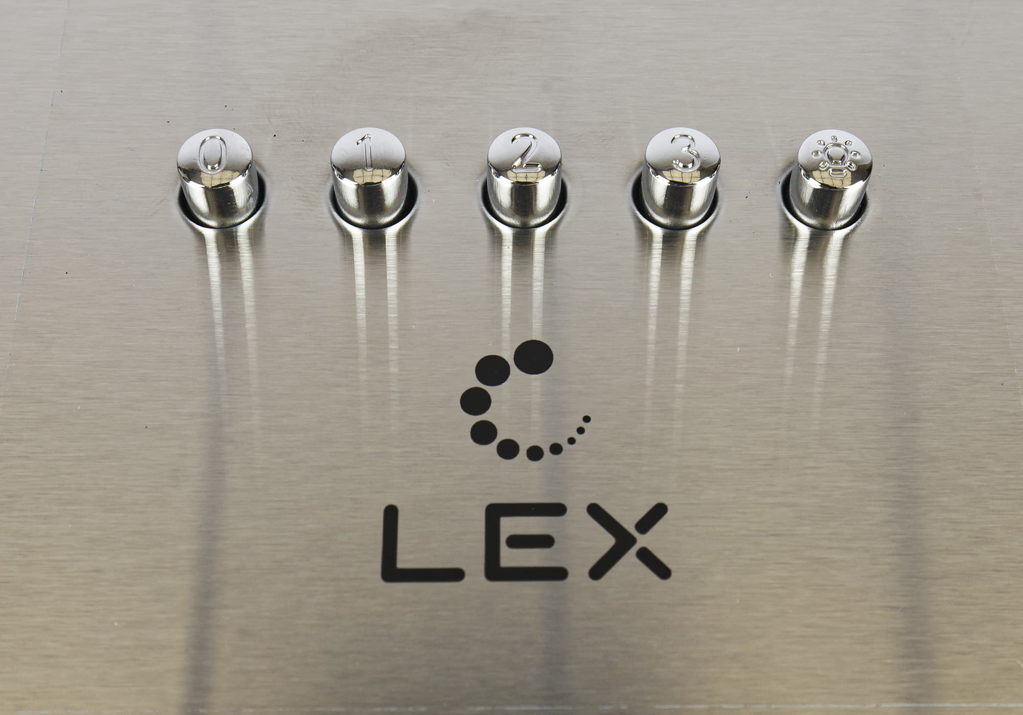 Панель управления вытяжкой — это ряд из пяти механических кнопок.