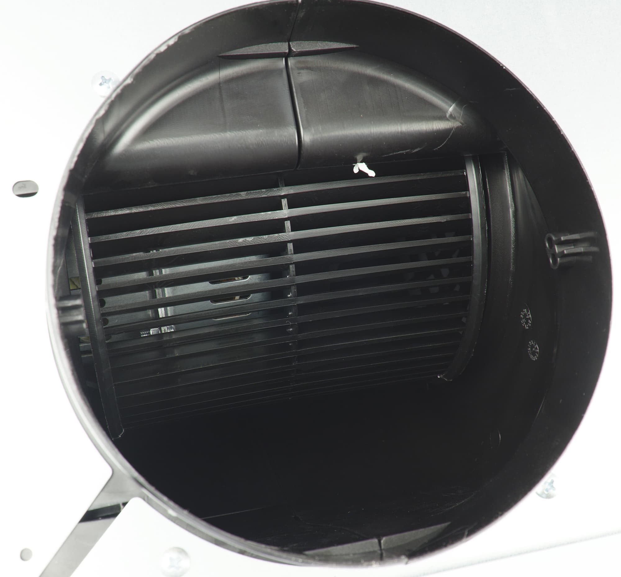 На выходном отверстии диаметром 150 мм есть пазы: в них можно установить входящие в комплект лепестки невозвратного клапана, если устройство подключается к вытяжной вентиляции.