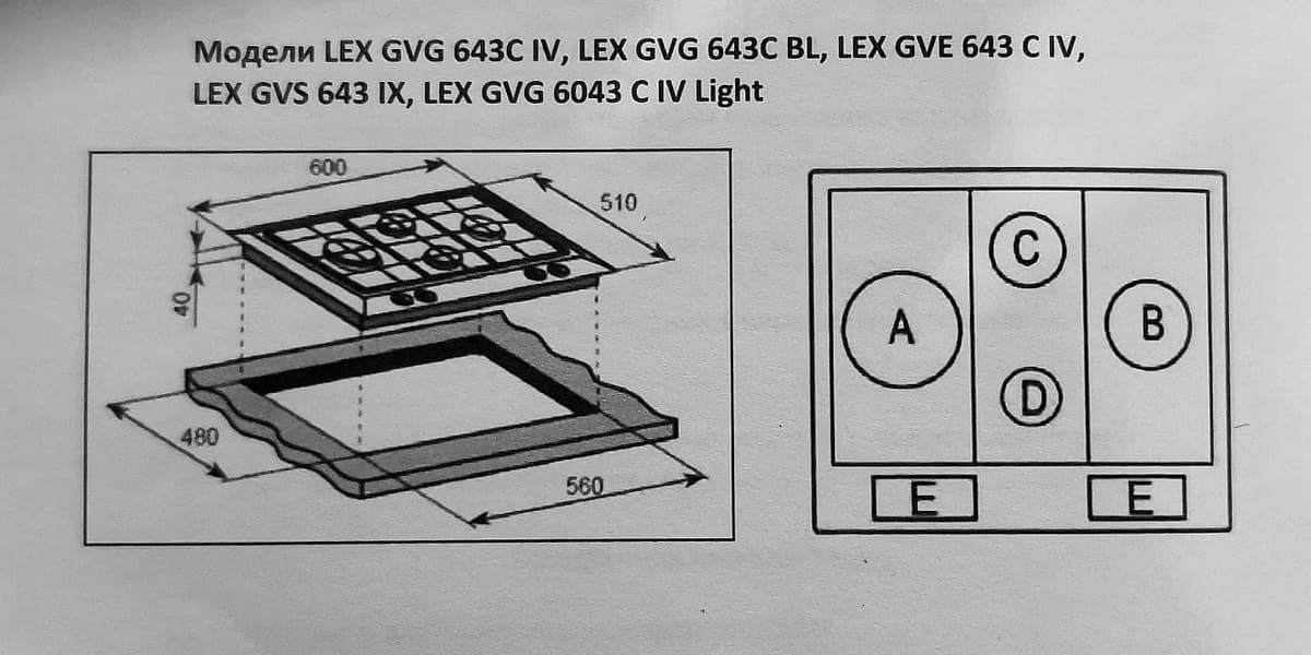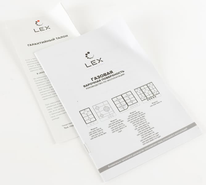 К варочной панели Lex GVG 640-1 прилагалась инструкция, которая идет в комплект ко всем газовым панелям, выпускаемым Lex. Мы насчитали 27 моделей, к которым она подходит. Первые страницы, как обычно, посвящены технике безопасности и мерам предосторожности, далее располагаются чертежи с описанием моделей, размерами и комплектацией. Есть раздел с советами по эксплуатации, выбору посуды и требованиями к установке. В конце представлена таблица характеристик основных инжекторов и решения неисправностей. Инструкция написана понятным языком и содержит всю необходимую информацию.
