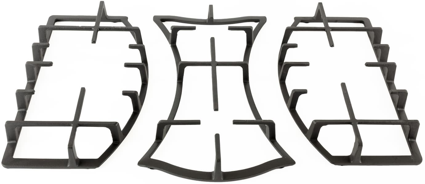 Решетка над конфорками состоит из трех отдельных элементов, которые устанавливаются в выштамповки поверхности.