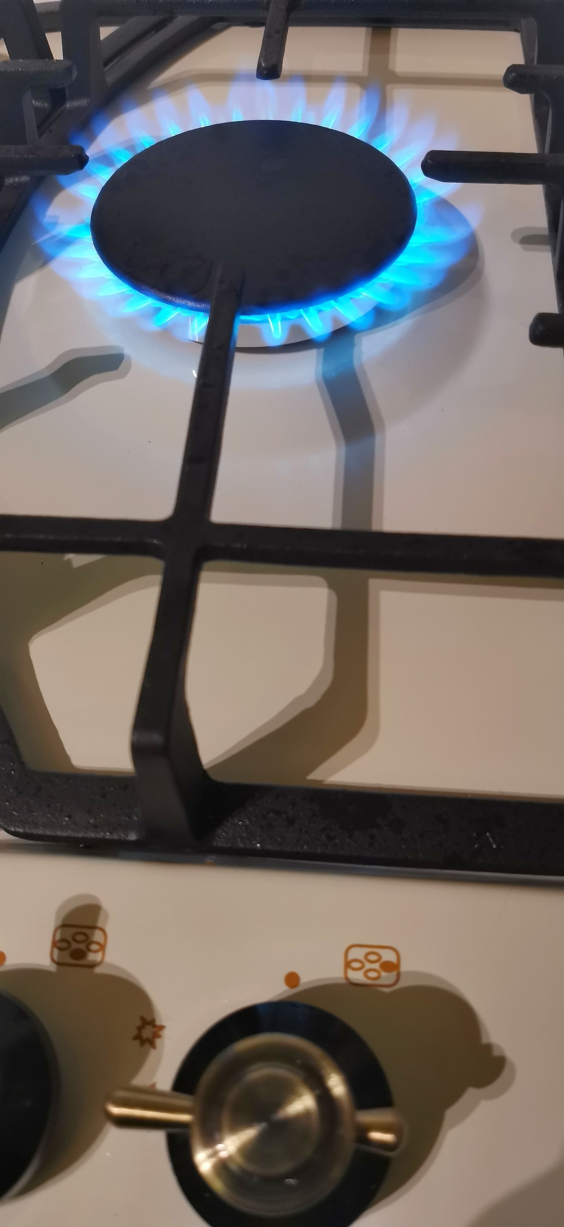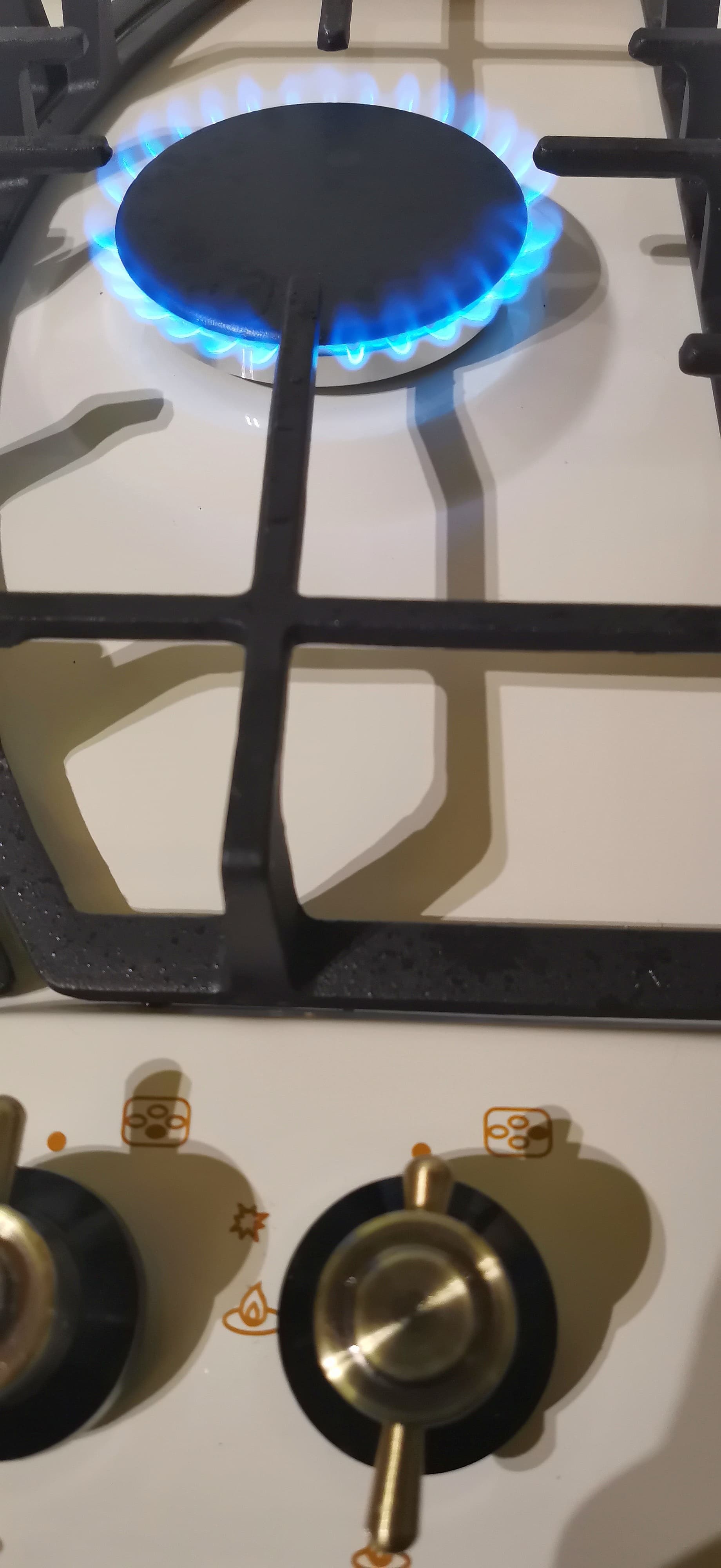 Электроподжиг работает корректно — конфорка зажигается быстро. Пламя стабильное, ровное, без срывов даже на самом минимуме. Благодаря тому, что электроподжиг не вынесен отдельной кнопкой, а управляется самой ручкой, газ легко зажечь одной рукой.