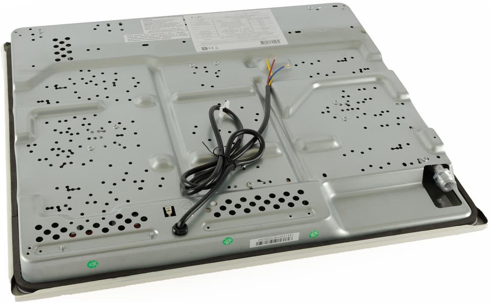 Никаких сложностей с подключением панели у нас не возникло. Размеры для встраивания у данной модели 480×560 мм, с нижней стороны панель удерживается крепежными элементами (фиксаторами) с помощью винтов из комплекта. Места под вкручивание отмечены на корпусе стрелочками.