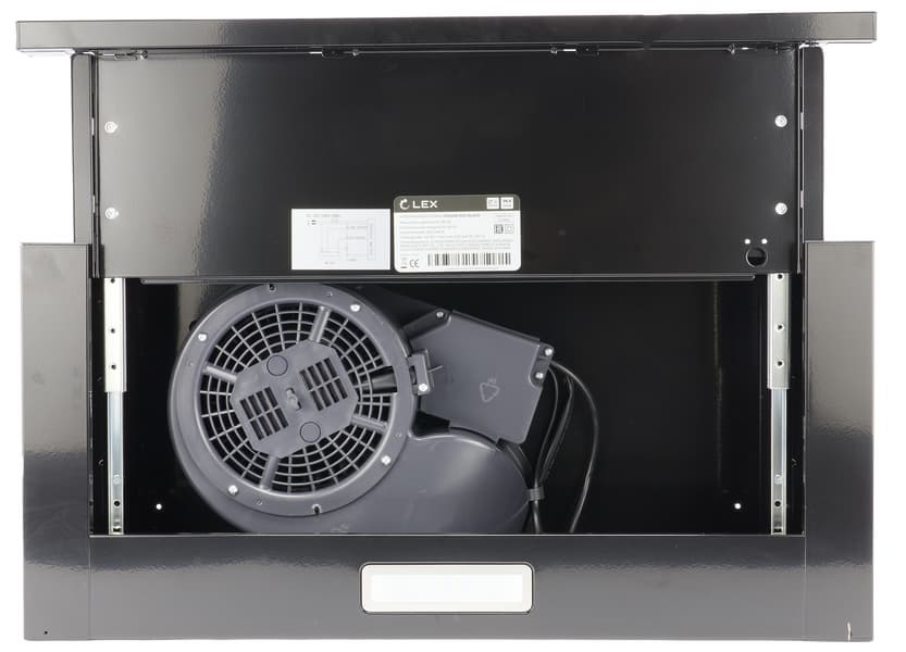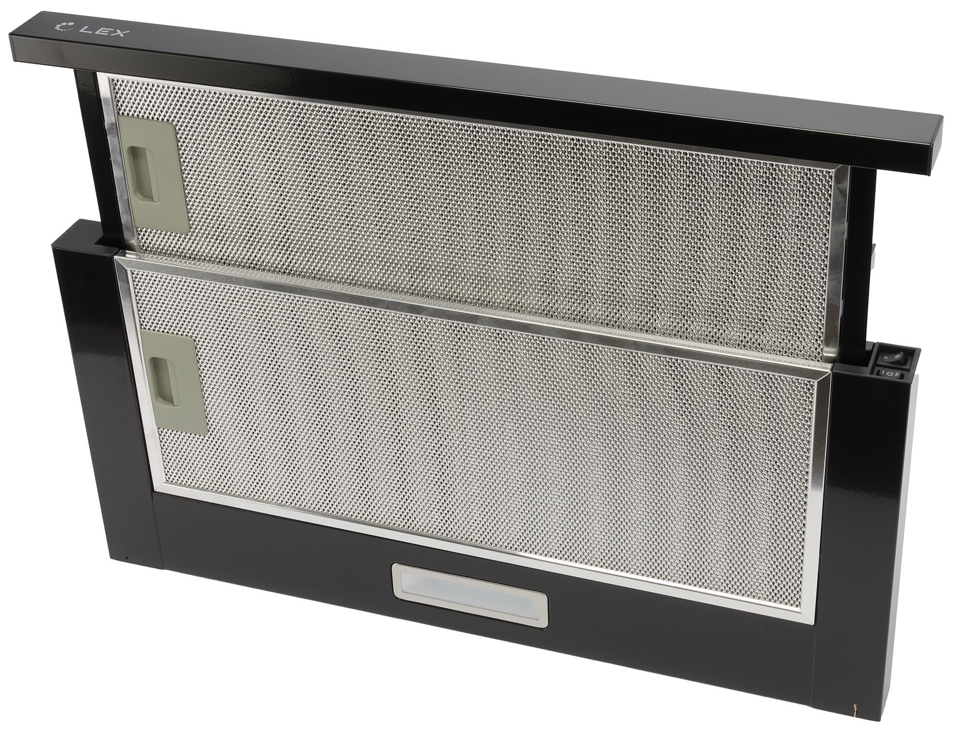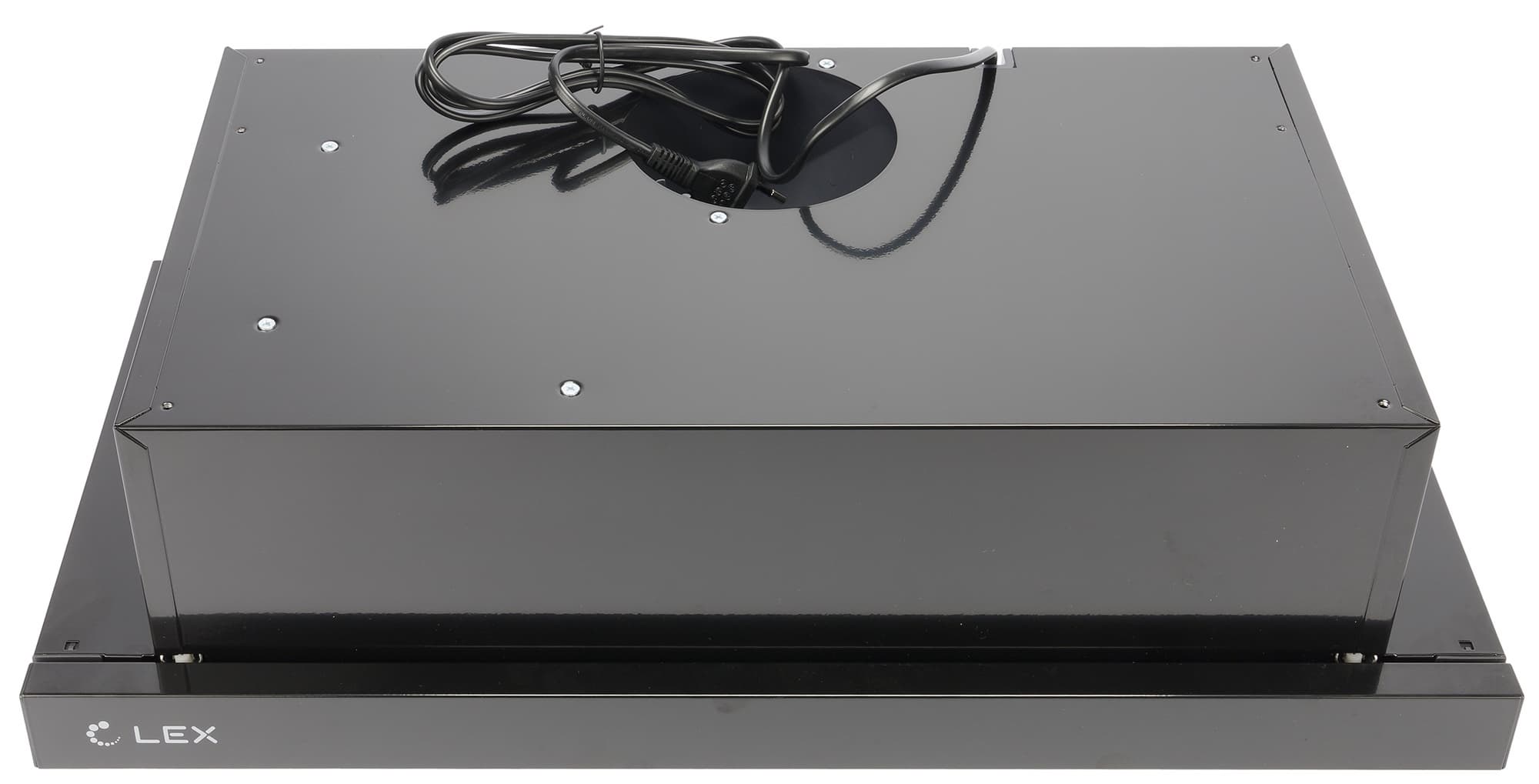 Кухонная вытяжка Lex Hogan 600 Black может использоваться как в качестве встраиваемой, так и в роли настенной. Это очень удобно, например, если покупка кухонного гарнитура откладывается, а вытяжка нужна прямо сейчас: сначала вешаем вытяжку на стену, а когда мебельщики закончат монтаж кухни — встроим ее в шкаф.