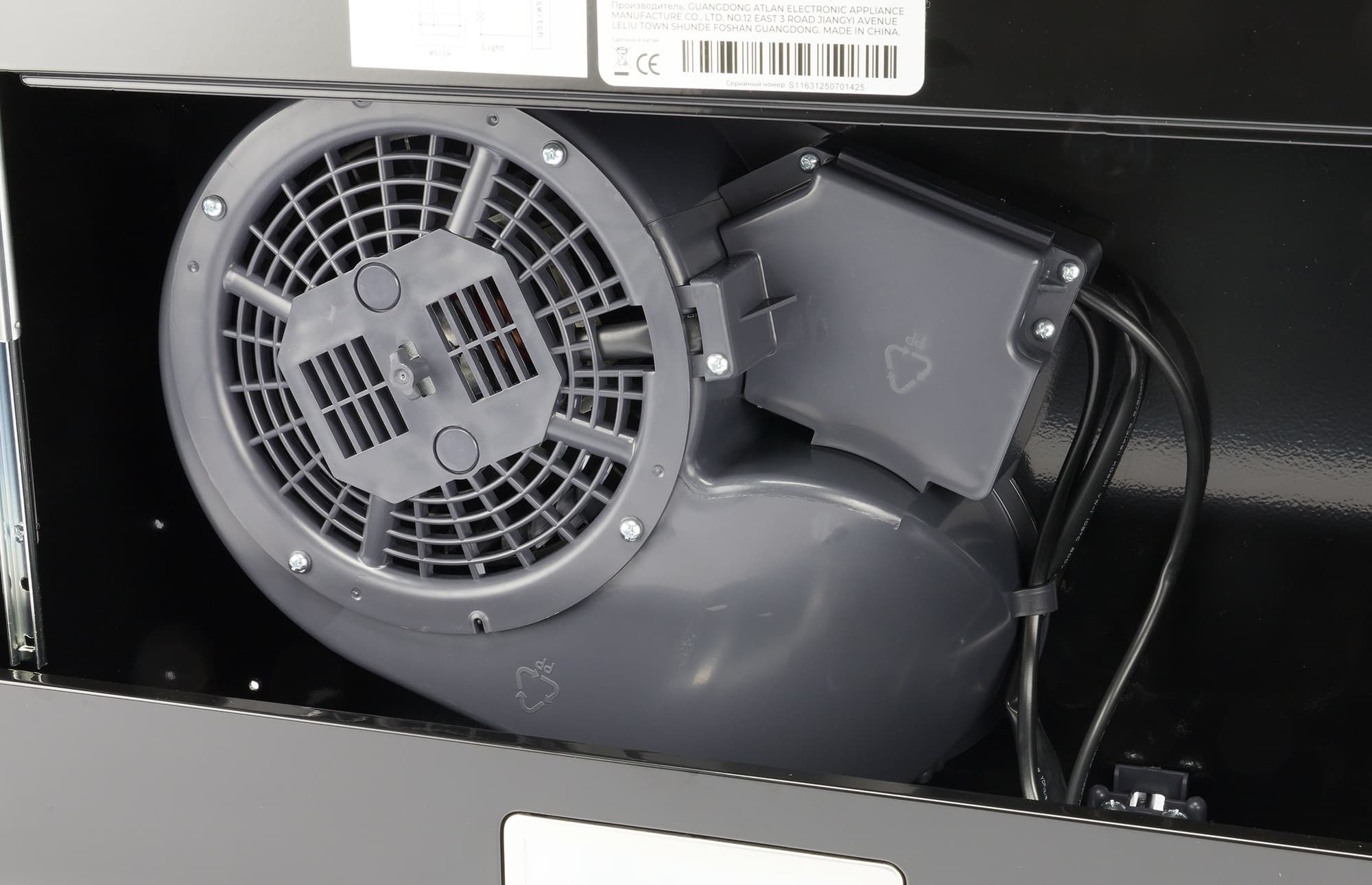 Отметим, что выдвижная панель оборудована концевым датчиком: освещение и вентиляция при складывании отключаются автоматически.