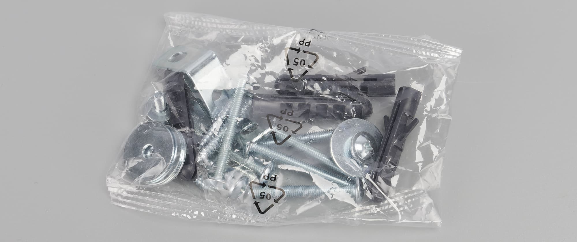 На стену вытяжка монтируется на обычные кроштейны-уголки. Их вместе с дюбелями, шайбами и саморезами можно обнаружить в отдельном пакетике комплекта поставки.