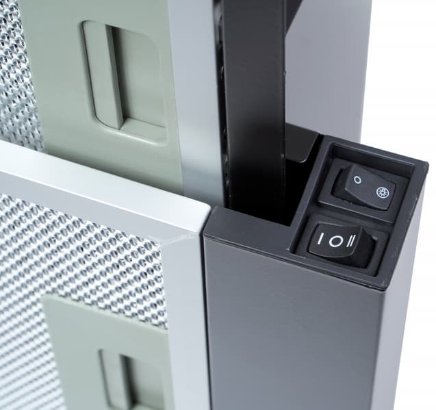 Панель управления Lex Hubble 600 – это два клавишных переключателя: двухпозиционный для включения подсветки и трехпозиционный — для включения двух скоростей вентиляторов.