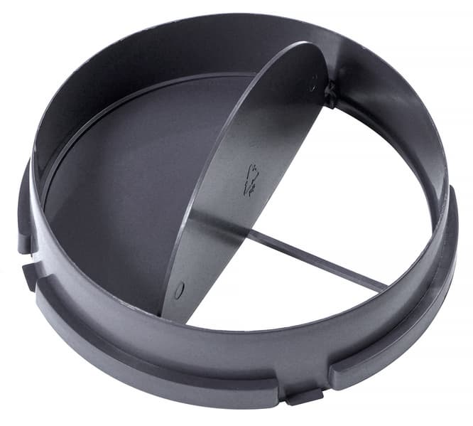 Невозвратный клапан у нашей вытяжки тоже традиционной конструкции: два полукруга, откидывающиеся потоком воздуха. Они защищают прибор от мусора из вентиляционной трубы и предотвращают возникновение обратной тяги.