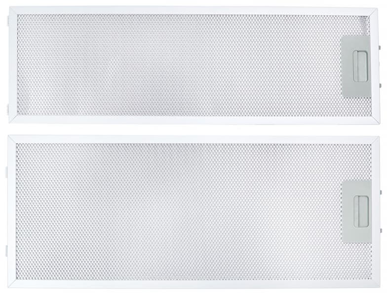 Фильтры-жироуловители традиционной конструкции: трехмерные сетчатые элементы из тонкого алюминия со стандартными механизмами крепления. Язычки защелок выступают из фильтра не сильно, что несколько затрудняет их установку.