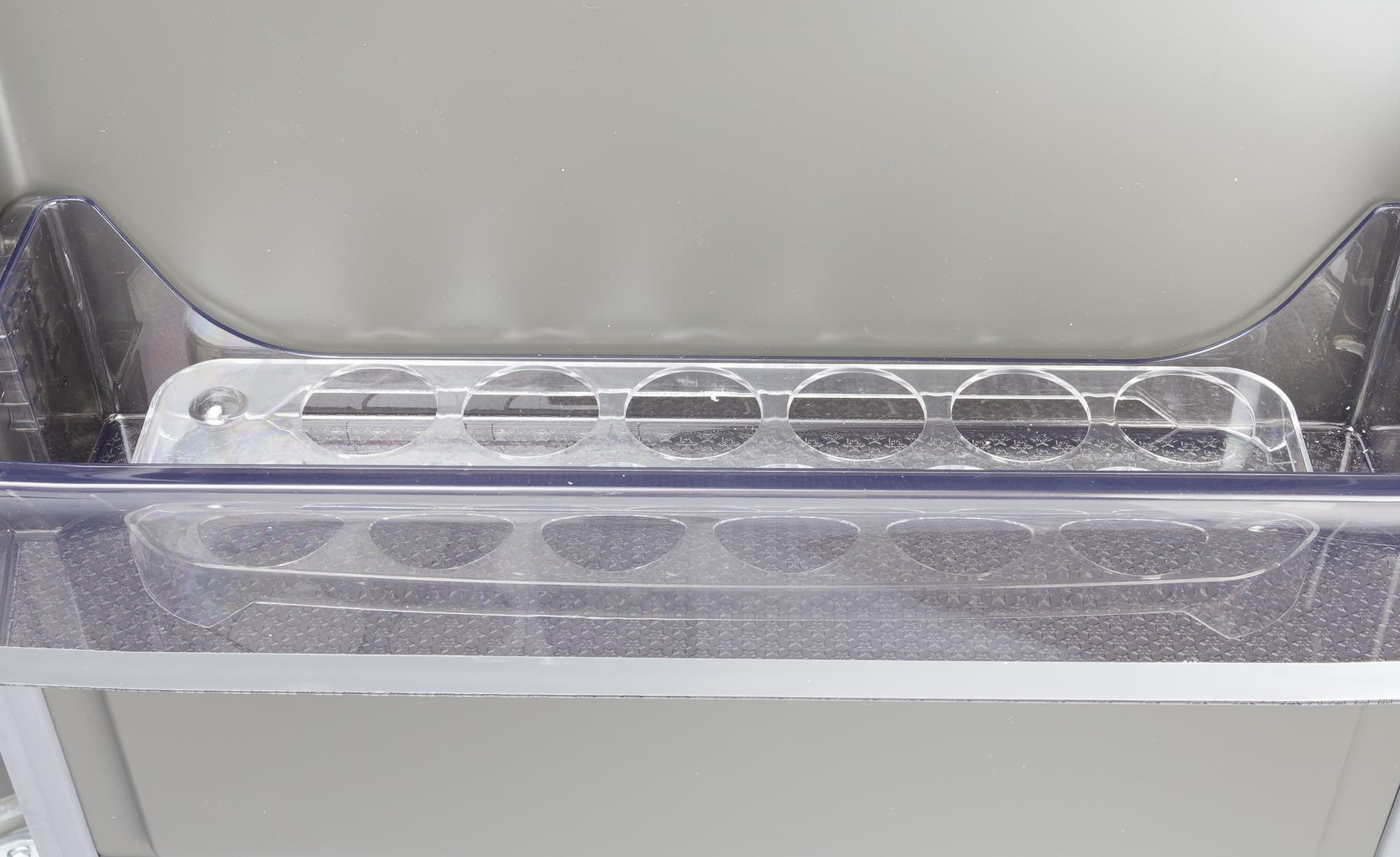 К холодильнику прилагается пластиковая подставка, рассчитанная на дюжину яиц. Ее можно разместить на любой из четырех полок.