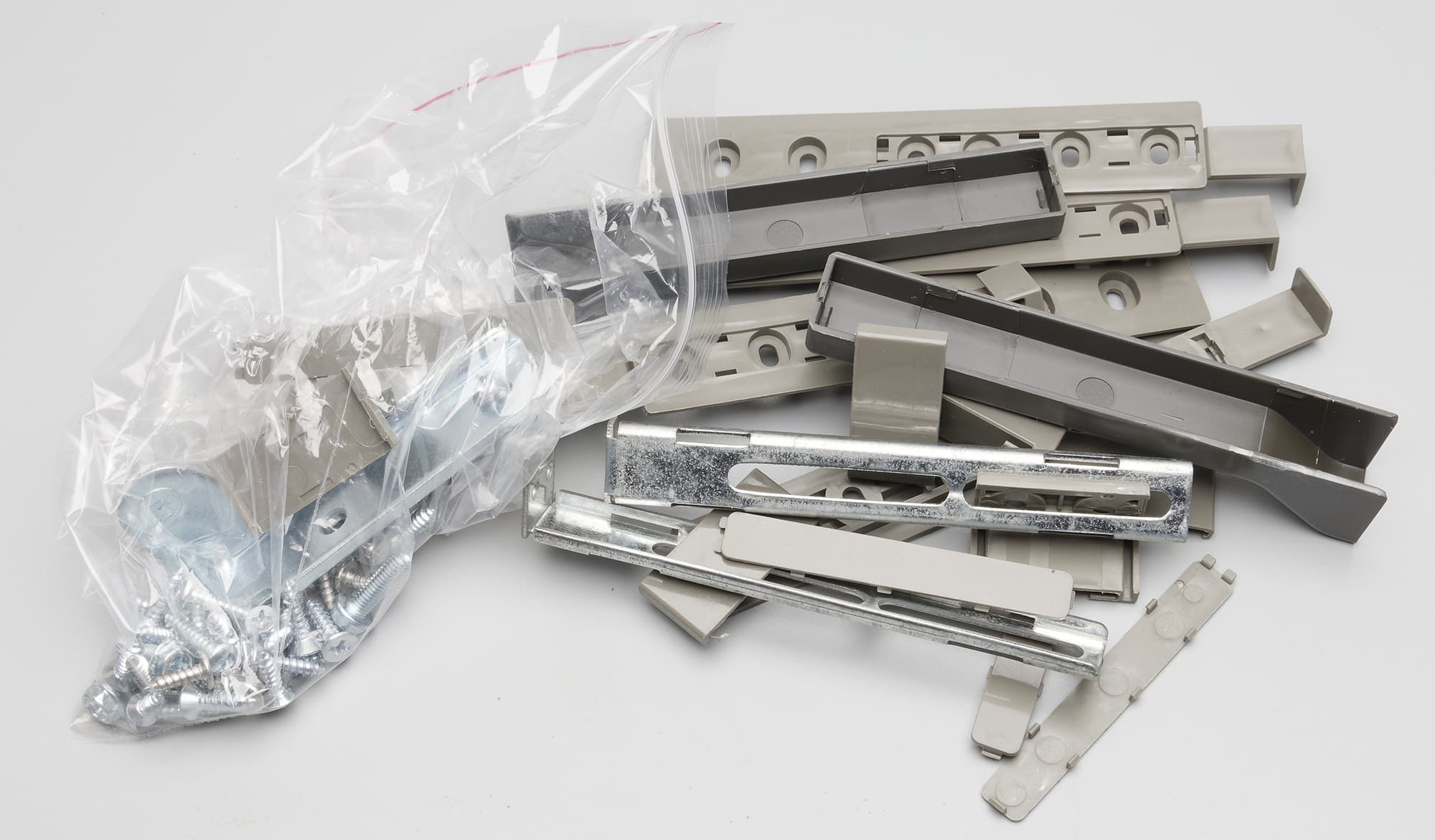 Для полностью встраиваемого прибора внешнее оформление не так важно, но выглядит распакованный холодильник весьма привлекательно: корпус и дверцы отделаны тиснением «под кожу» и окрашены в строгий серый цвет. Сохранность устройства при установке дополнительно обеспечивает полиэтиленовая пленка, которой обтянуты все поверхности.