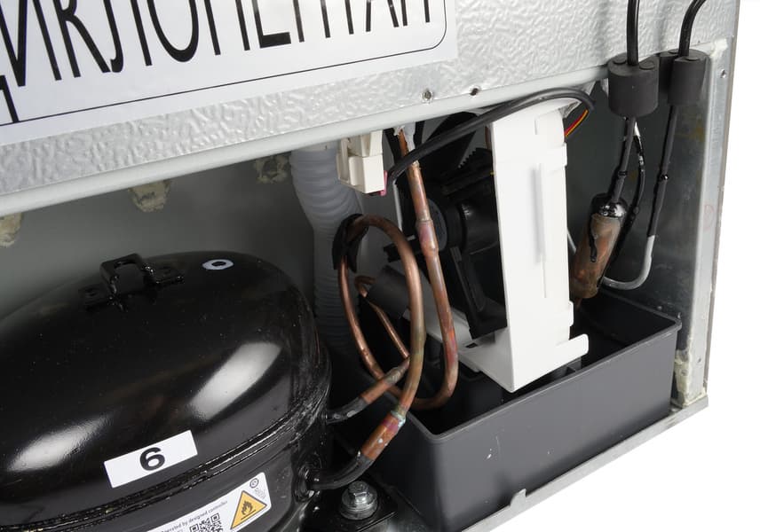 Конденсат, образующийся при работе системы автоматической разморозки, собирается в пластиковой ванночке.