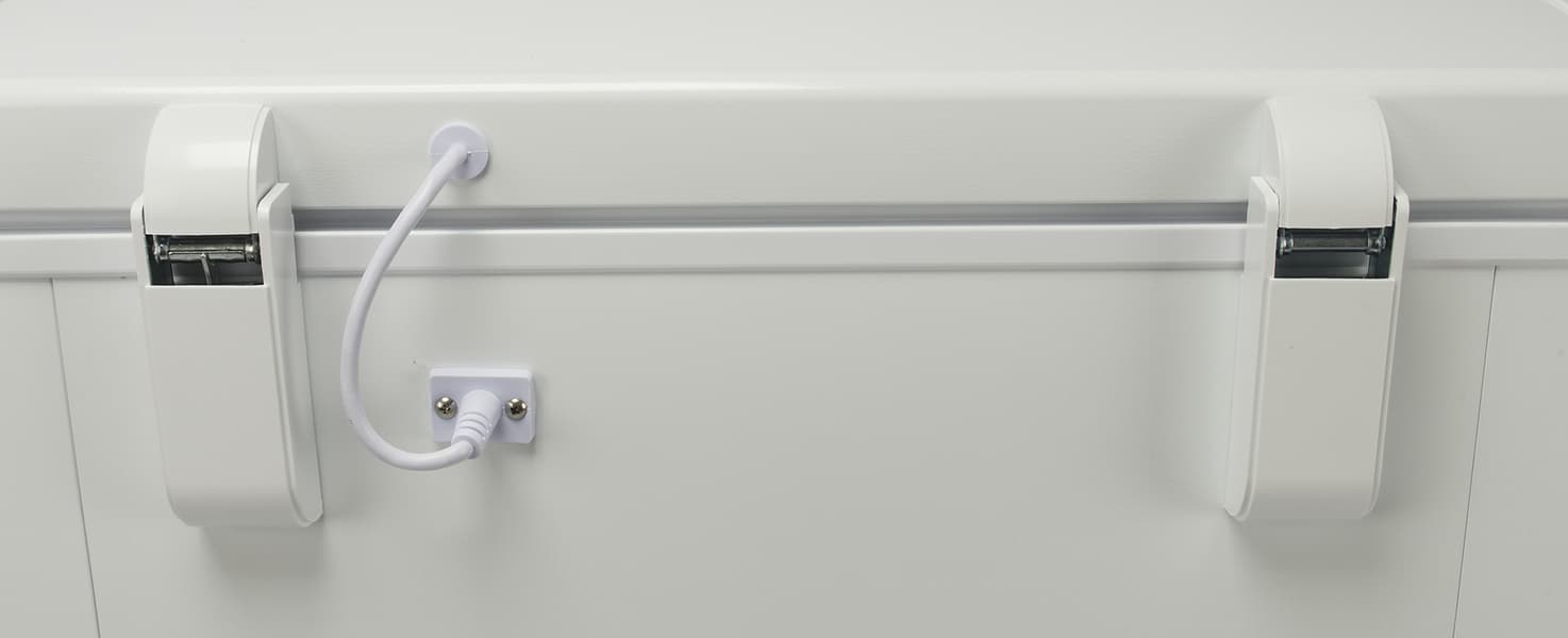 Датчика закрытия двери у морозильного ларя нет — открытая в течение длительного времени крышка не заставляет устройство издавать предупреждающие сигналы и как-либо реагировать на проблему.