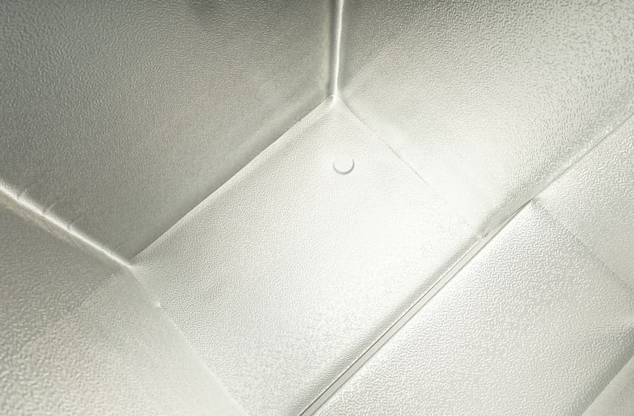 Внутреннее пространство отделано текстурированным алюминием. Ниша холодильного агрегата образует небольшую ступеньку: это традиционная особенность этого класса устройств.