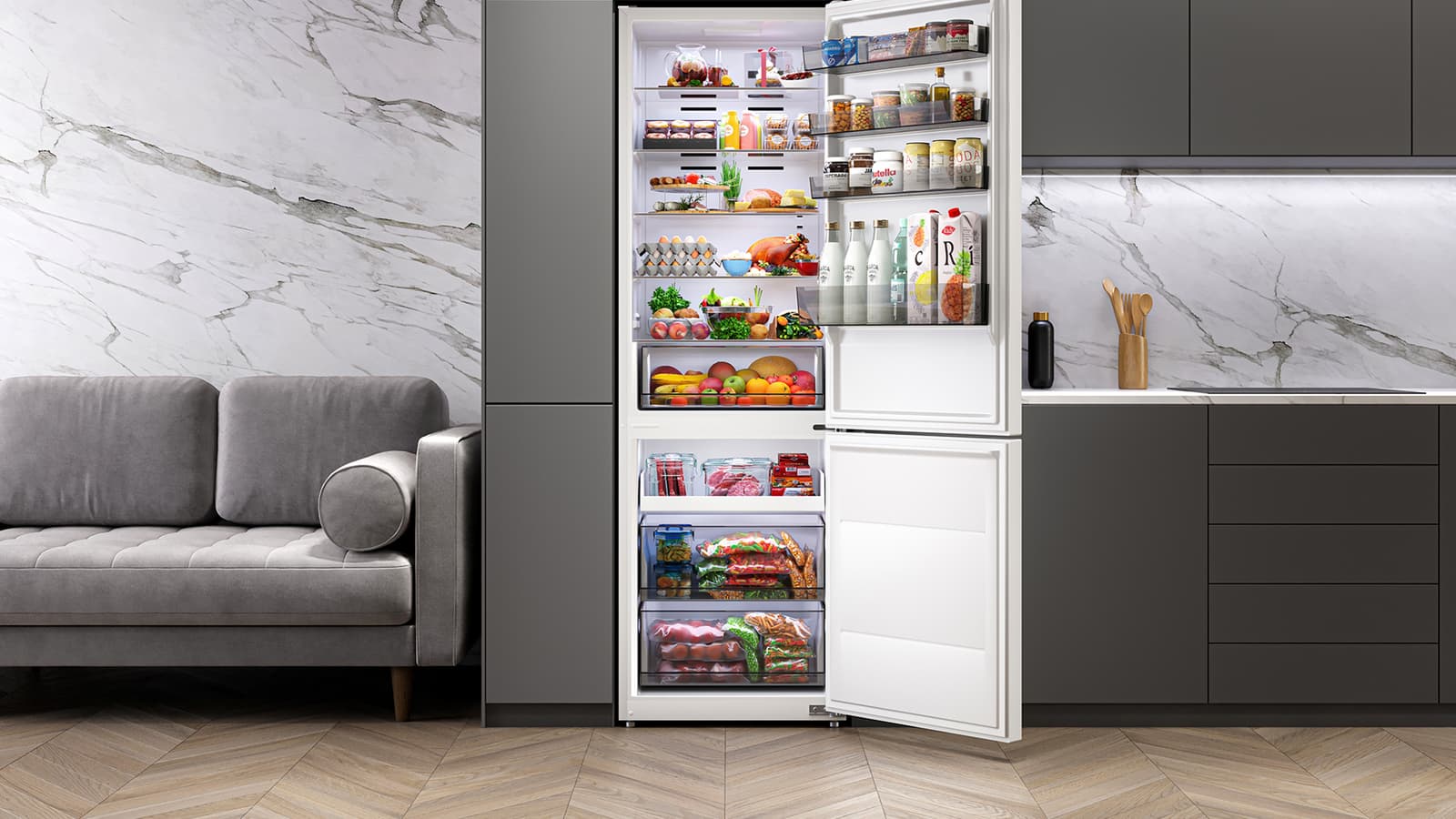 Одним из самых важных критериев при выборе холодильника мы считаем его вместительность. При создании Lex LKB201WIDMax дизайнеры и конструкторы постарались обеспечить максимальный объем хранения за счет увеличенной глубины и эффективного использования внутреннего пространства.