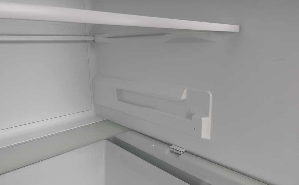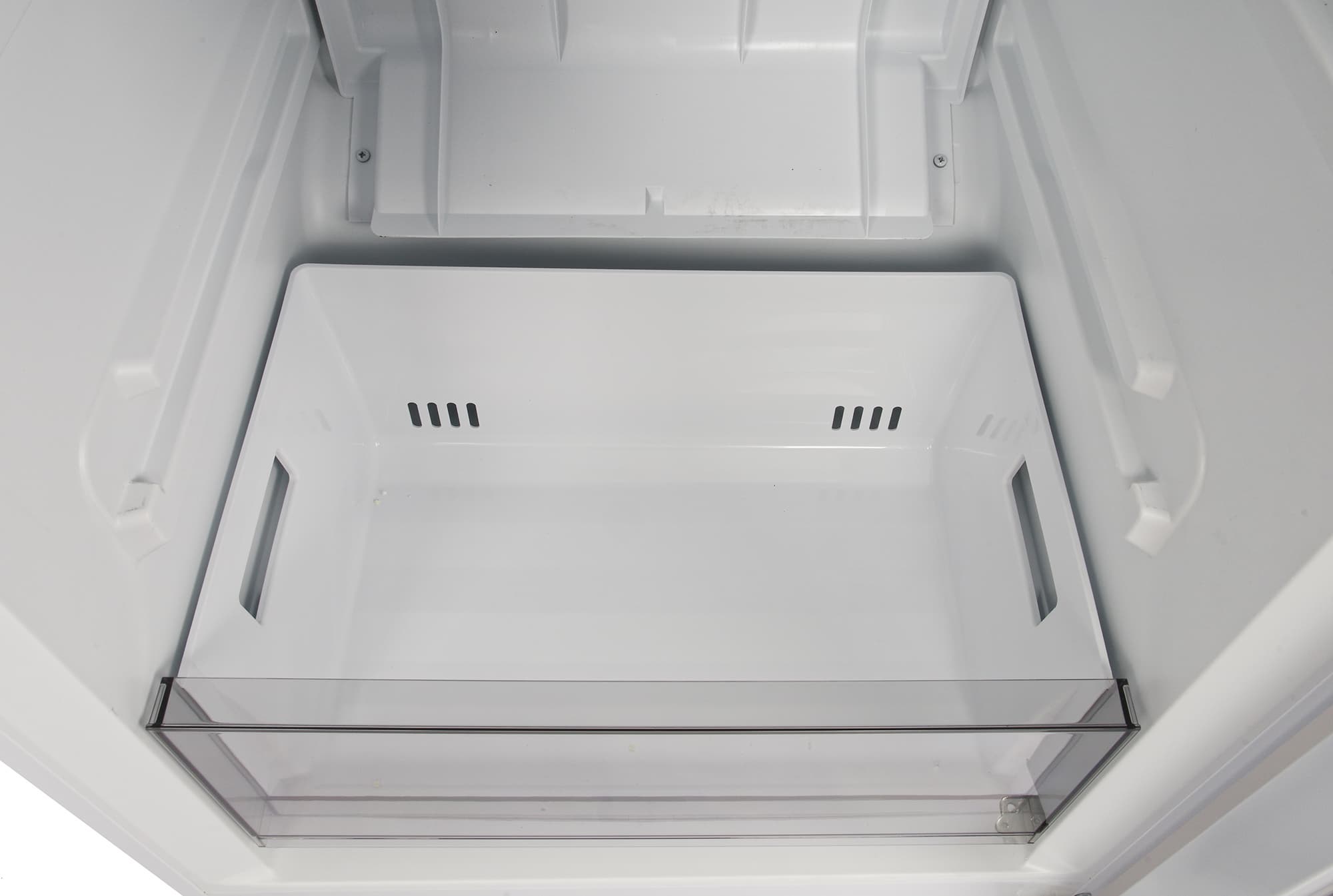 На стенках камеры мы видим крепления для второго ящика, но в комплект нашей модели он не входит. Связавшись с производителем, мы выяснили, что холодильники следующих партий будут укомплектованы дополнительным контейнером: потенциальным покупателям, желающим приобрести Lex LKB201WIDMax с двумя зонами свежести, лучше уточнить этот момент перед покупкой.