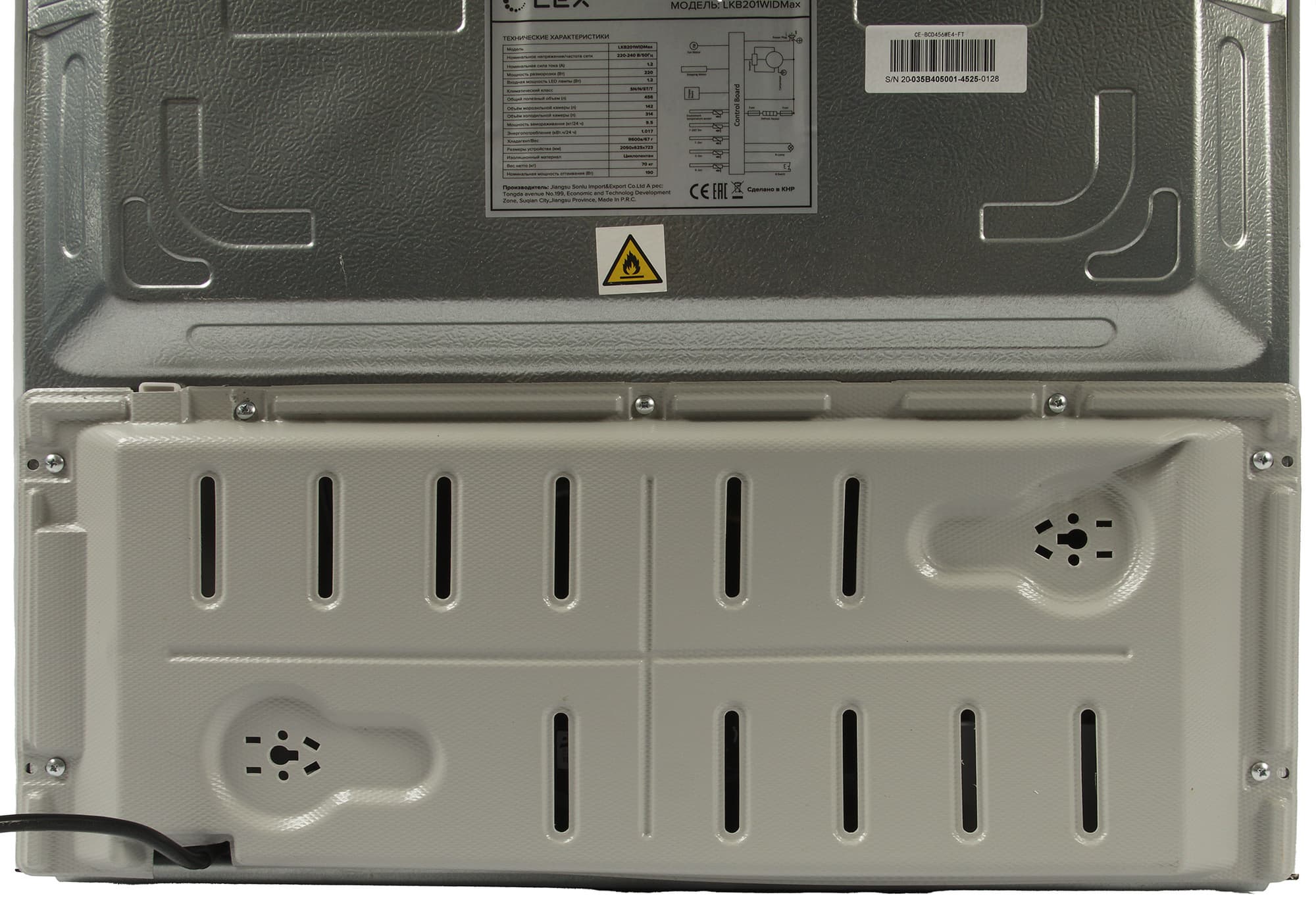 Трубки теплообменника у Lex LKB201WIDMax скрыты за боковыми стенками. Они заметно нагреваются при работе — это особенно хорошо видно на фотографиях, сделанных с помощью тепловизора.