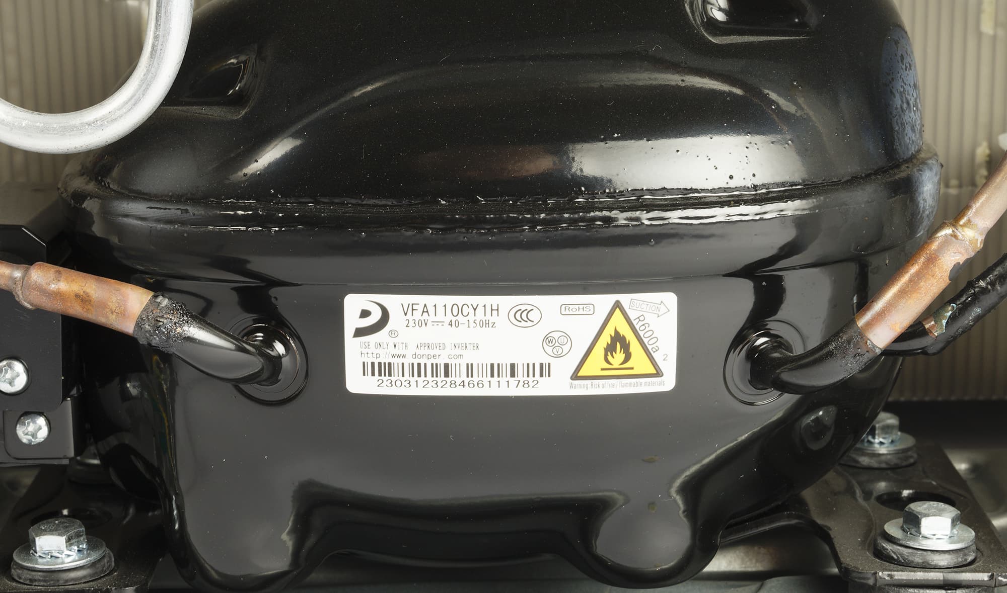 В конструкции этой модели использован инверторный компрессор VFA110CY1H, произведенный Hubei Donper Electromechanical Group.