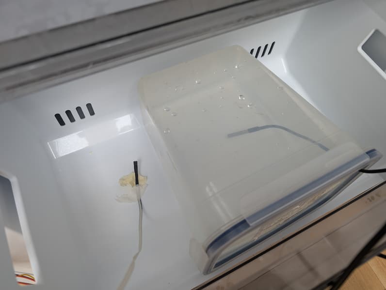 Чтобы тепловыделение процессора не влияло на микроклимат в камере и результаты измерений, прибор размещается снаружи холодильника. Датчики соединяются с мини-компьютером тремя проводами сечением 0,3 мм² с дополнительной герметизацией в месте прохождения под уплотнителем дверцы.