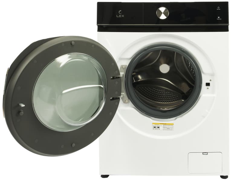 Стиральная машина Lex LWM07014WBTHID оформлена в традиционных для нынешних моделей цветах: черном и белом. Крышка отсека для моющих средств и панель управления визуально объединяются полосой из черного гладкого пластика.