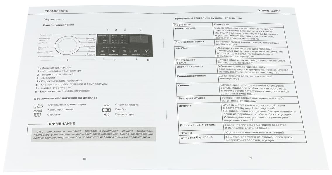 | Деликатная сушка | − | − | 1:44 | − | − | + |