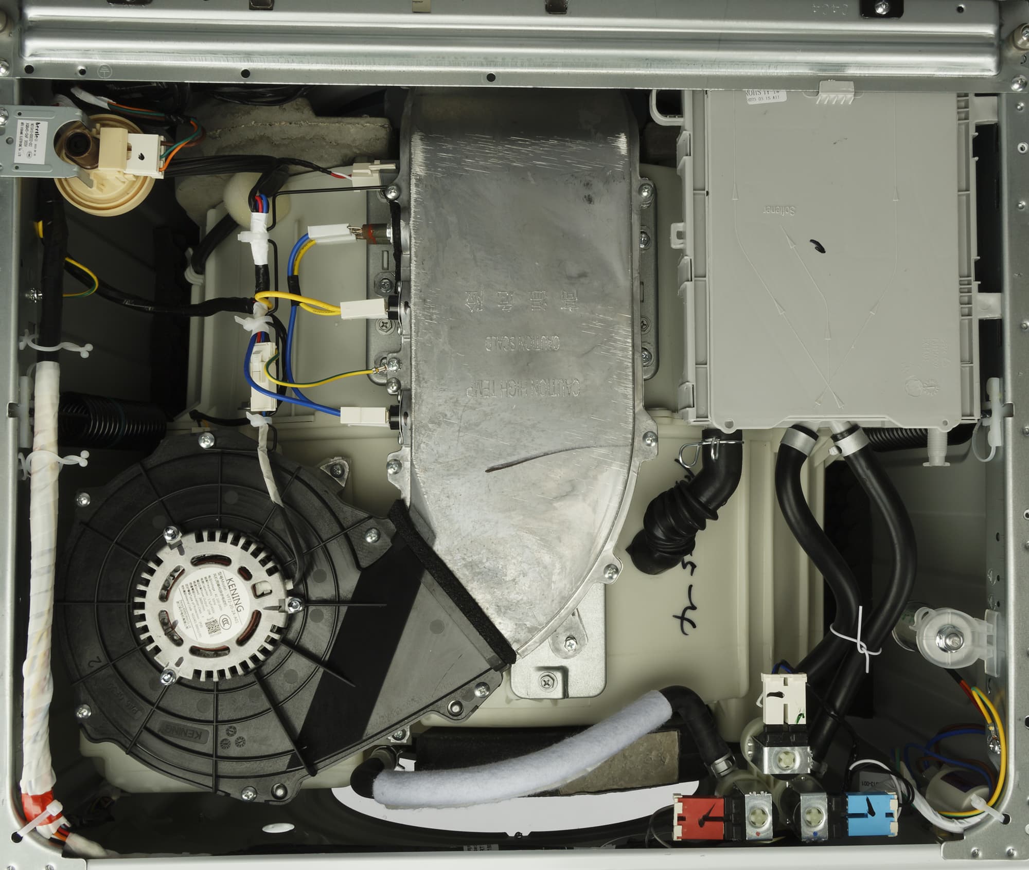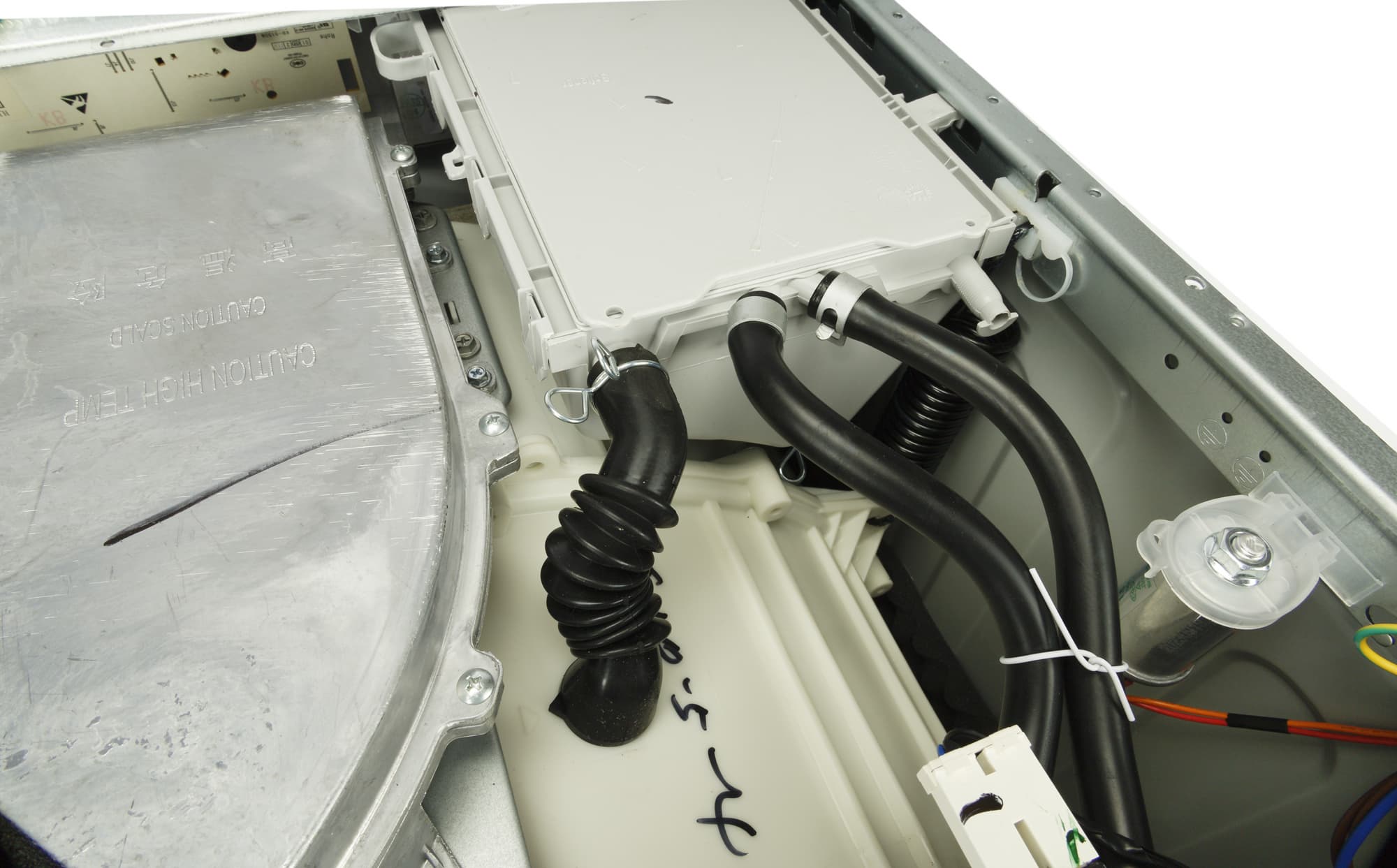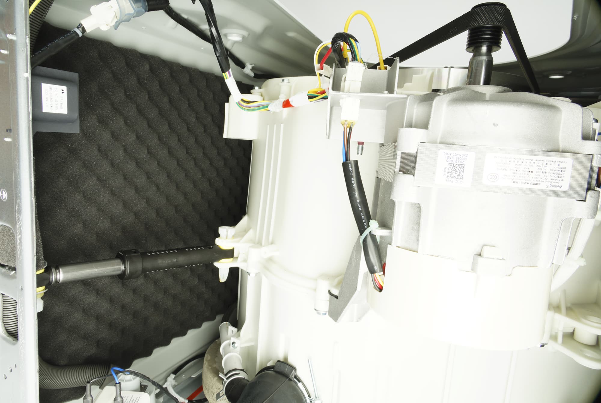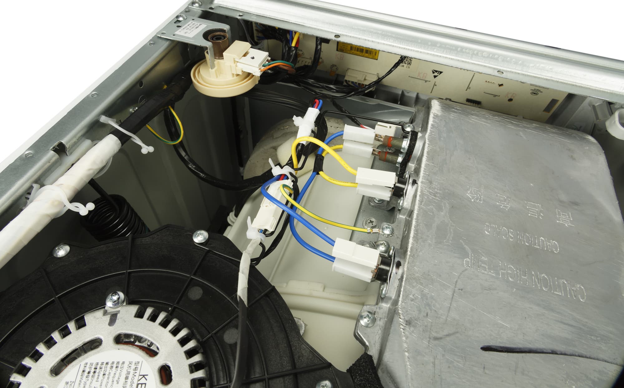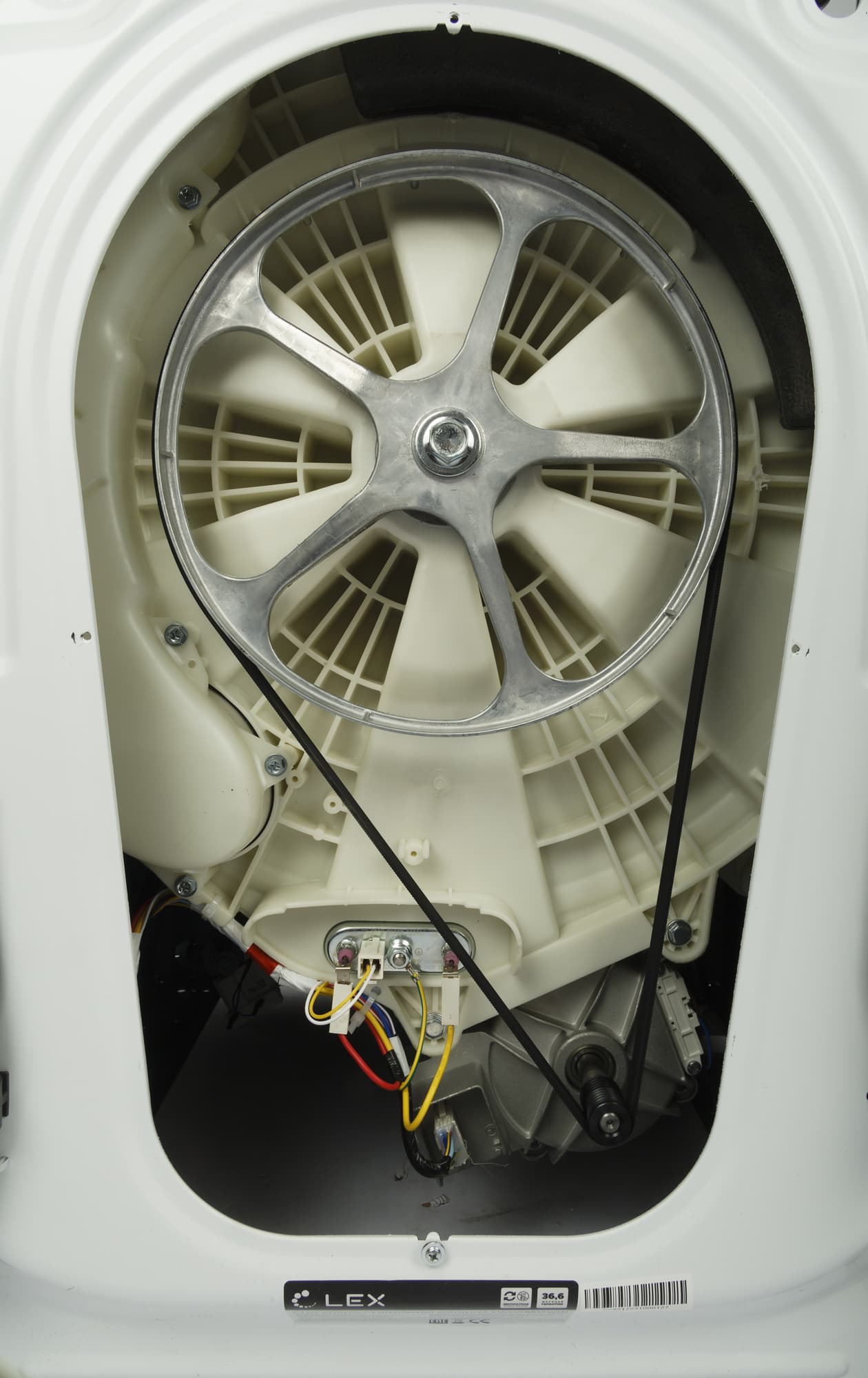 По сложившейся традиции мы производим неполную разборку стиральной машины, снимая верхнюю крышку из ДСП и заднюю панель, и фотографируем ее основные узлы, не комментируя увиденное.
