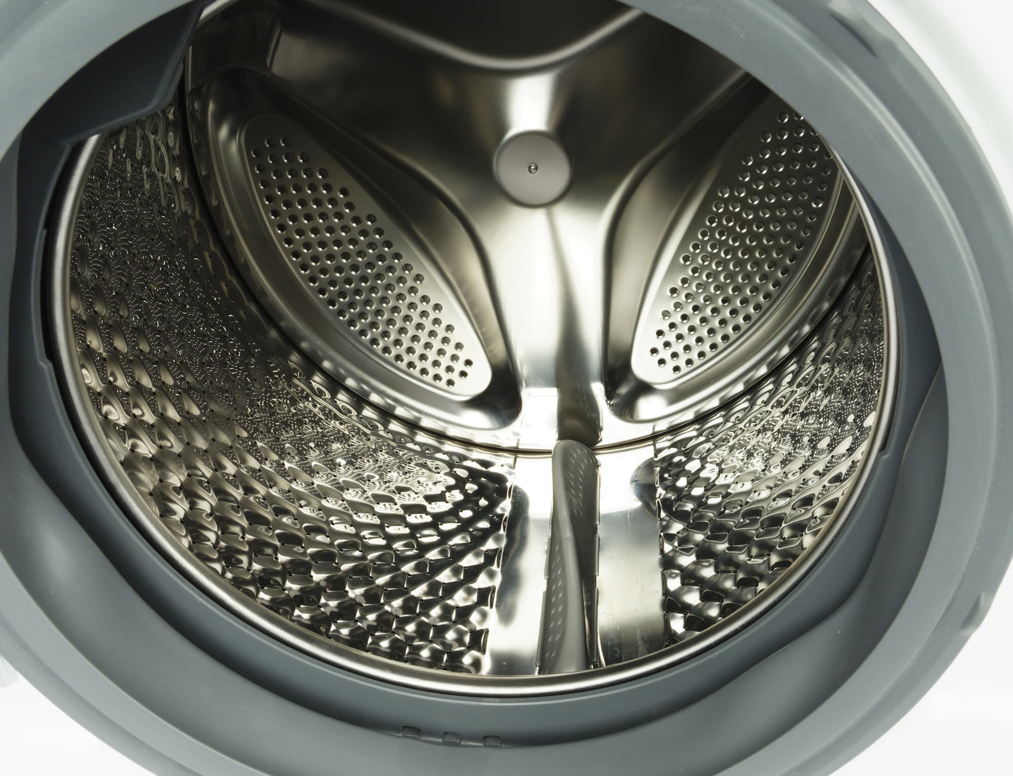 Перфорация на барабане нанесена и по периметру, и на торцевую стенку. На боковых поверхностях имеются специальные пластиковые бойники. Их задача — обеспечить наилучшее перемешивание содержимого барабана в процессе стирки, а также предоставить равномерный доступ воды ко всему объему белья в процессе стирки.