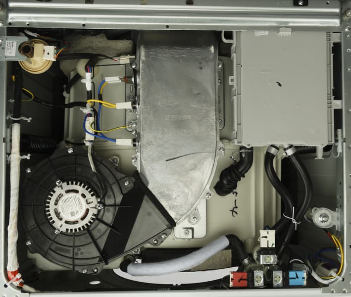 Последующие за отжимом 30-минутные циклы сушки снизили вес 2 кг белья сначала до 2836 г, затем — до 2466 г, а потом — до 2050 г. На 30-минутный цикл сушки тратится 0,52 кВт·ч электроэнергии. Режим «интеллектуальная сушка» высушил наши тестовые 2 кг хлопка идеально.