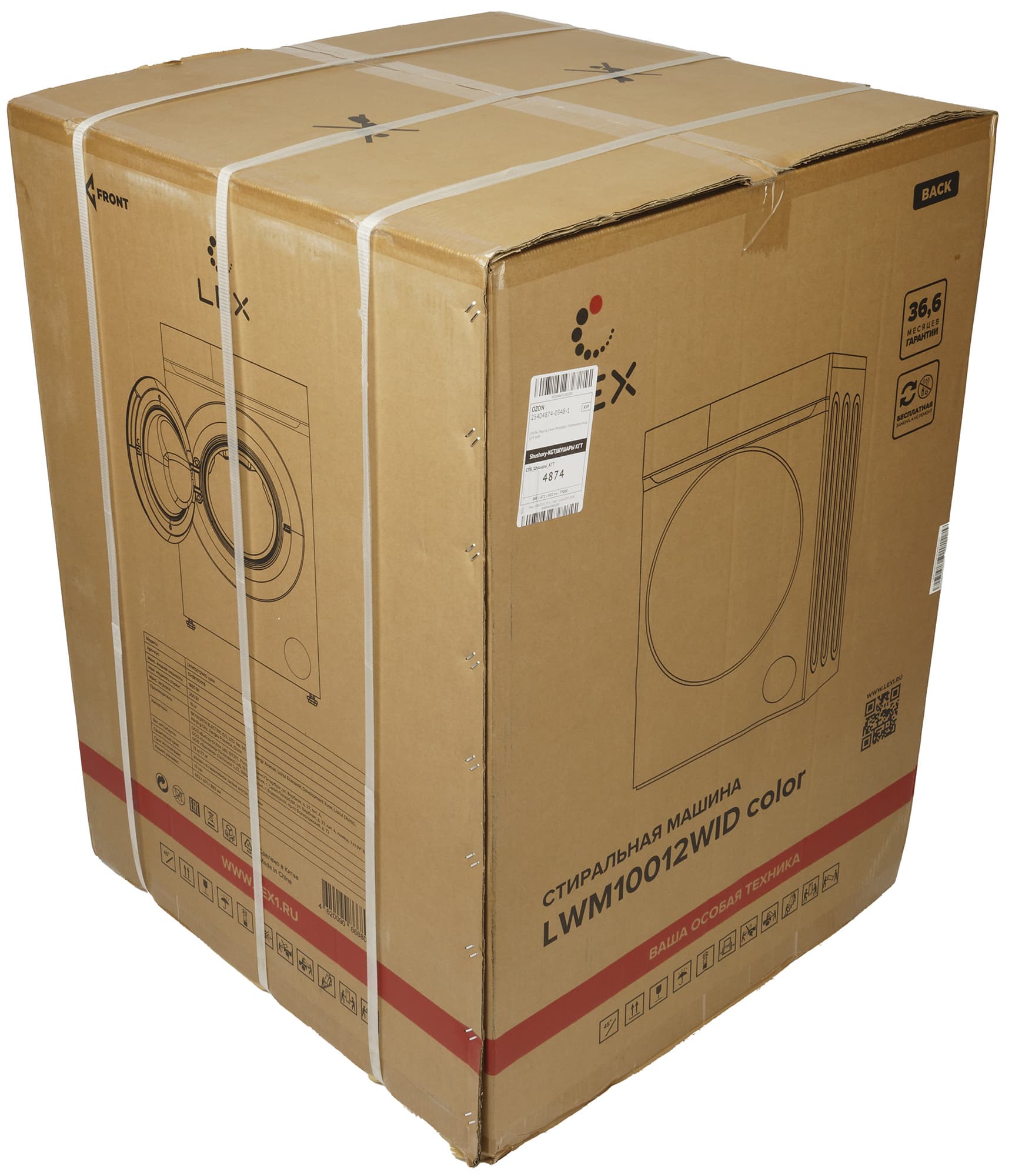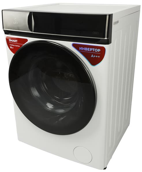 Lex LWM10012WID Color — полноразмерная стиральная машина с цветной сенсорной панелью управления. Отличительными особенностями этого устройства являются функция стирки с паром, обработка белья ультрафиолетом, подсветка барабана, а также, по заявлению производителя, низкий уровень шума.