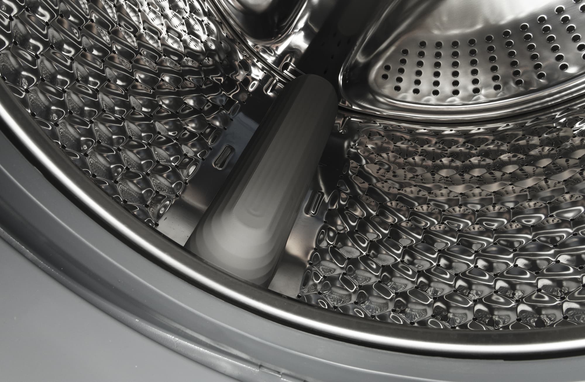 Рабочая поверхность барабана покрыта рельефными шестигранными «подушечками». Такое решение, согласно информации от производителя, обеспечивает мягкое скольжение вещей и сохранность даже самых нежных тканей.