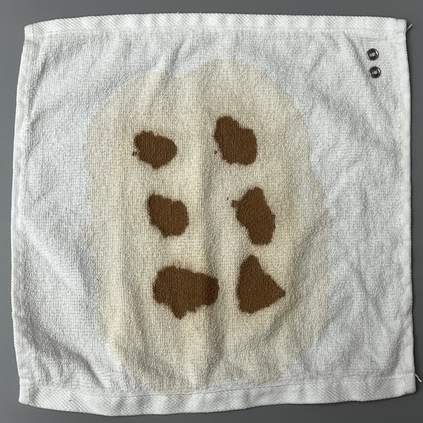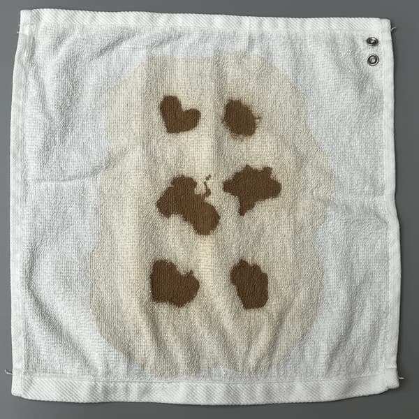 Мы украсили наши салфетки пятнами от красного вина, какао, томатного кетчупа и соевого соуса и просушили их в течение суток для закрепления эффекта.