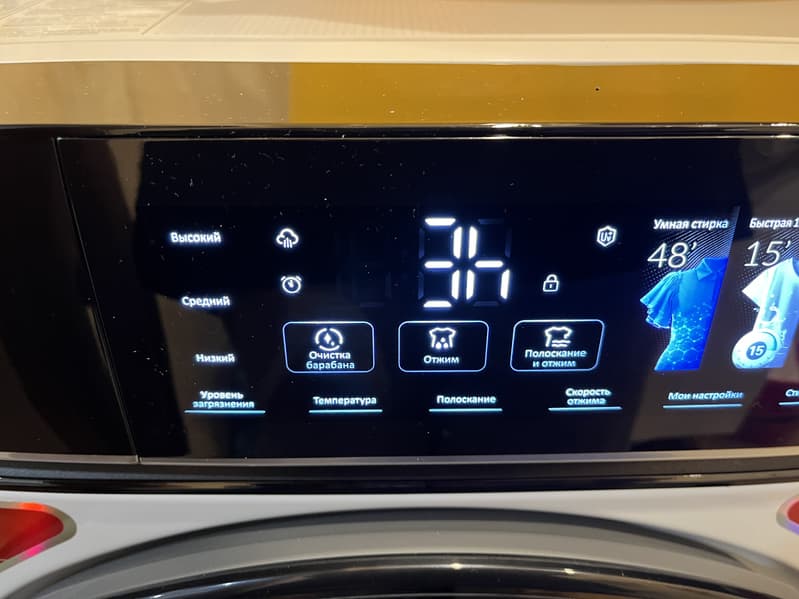 | Умная стирка | 40 (30—96) | 2 (1—5) | 0:48 (0:26—3:48, до 4:23 с функцией стирки с паром) | 800 (800—1200) |