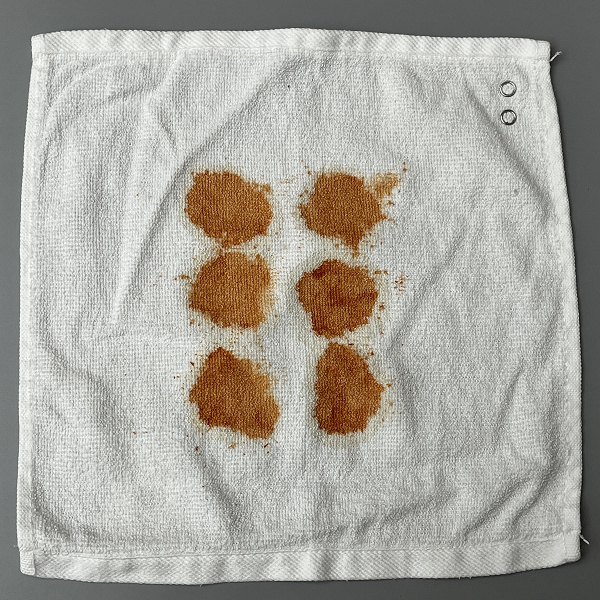 Чтобы что-то отстирать, надо сначала это запачкать. Поэтому мы выбрали субстанции, которые с трудом отстирываются, взяли белые махровые салфетки, которые отлично впитывают всё, что на них пролили, и соединили это для практического теста.