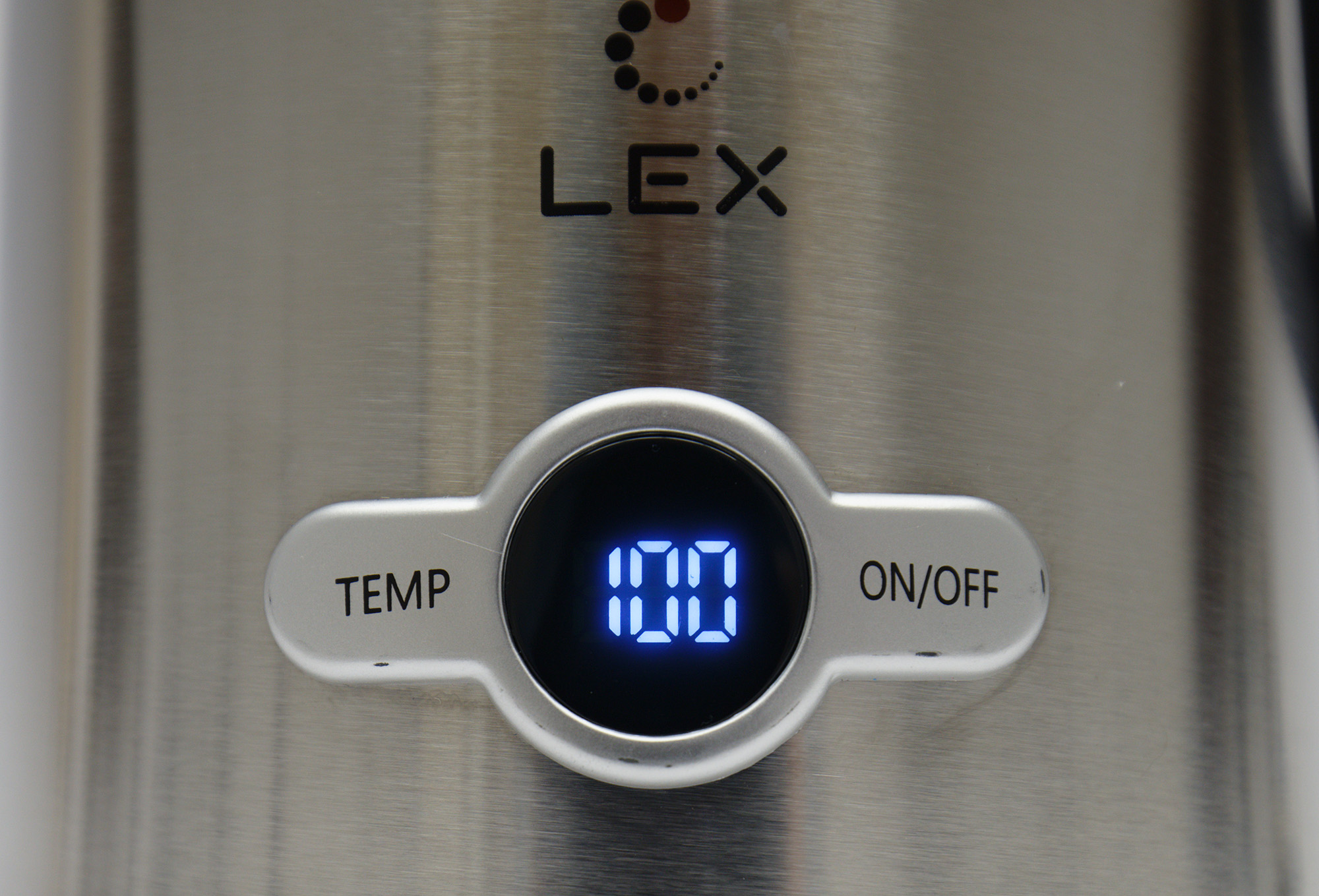 У Lex LX 30022-1 две сенсорные кнопки на левой стороне. Для кипячения воды достаточно коротко нажать на кнопку «Оn/Оff». Через пять секунд после нажатия прибор включится и доведет воду до кипения.