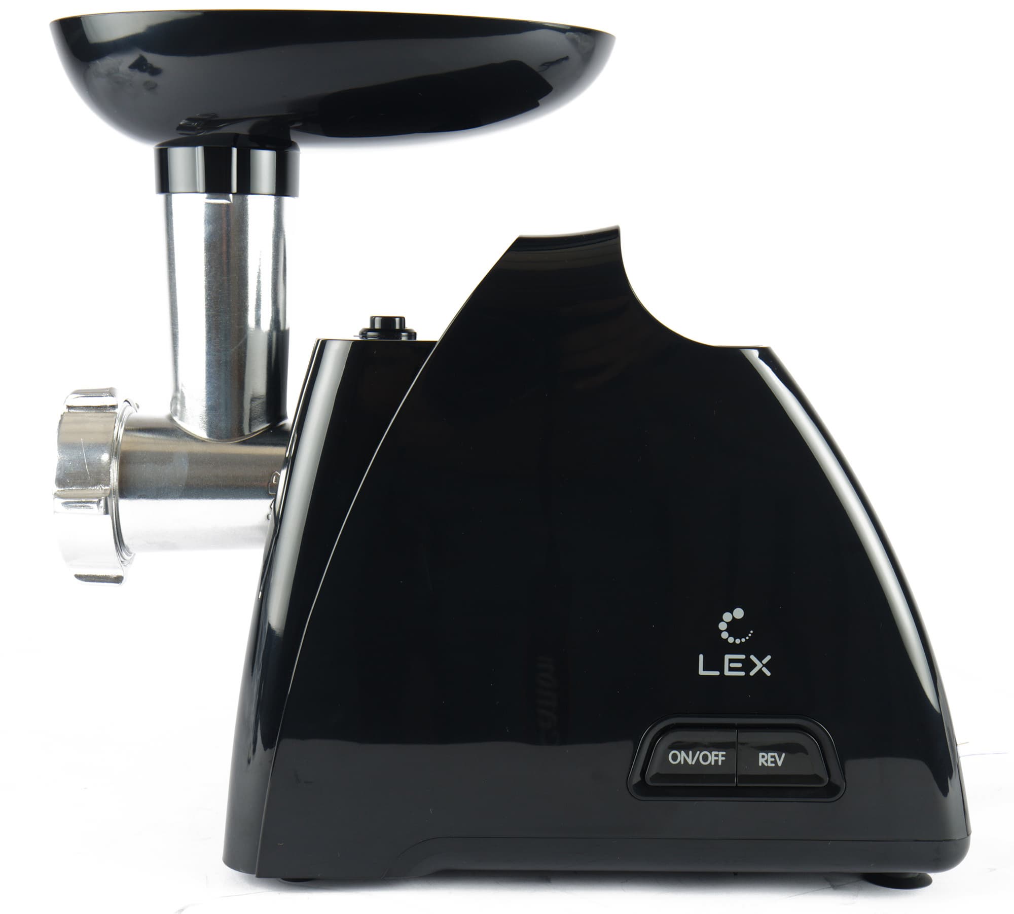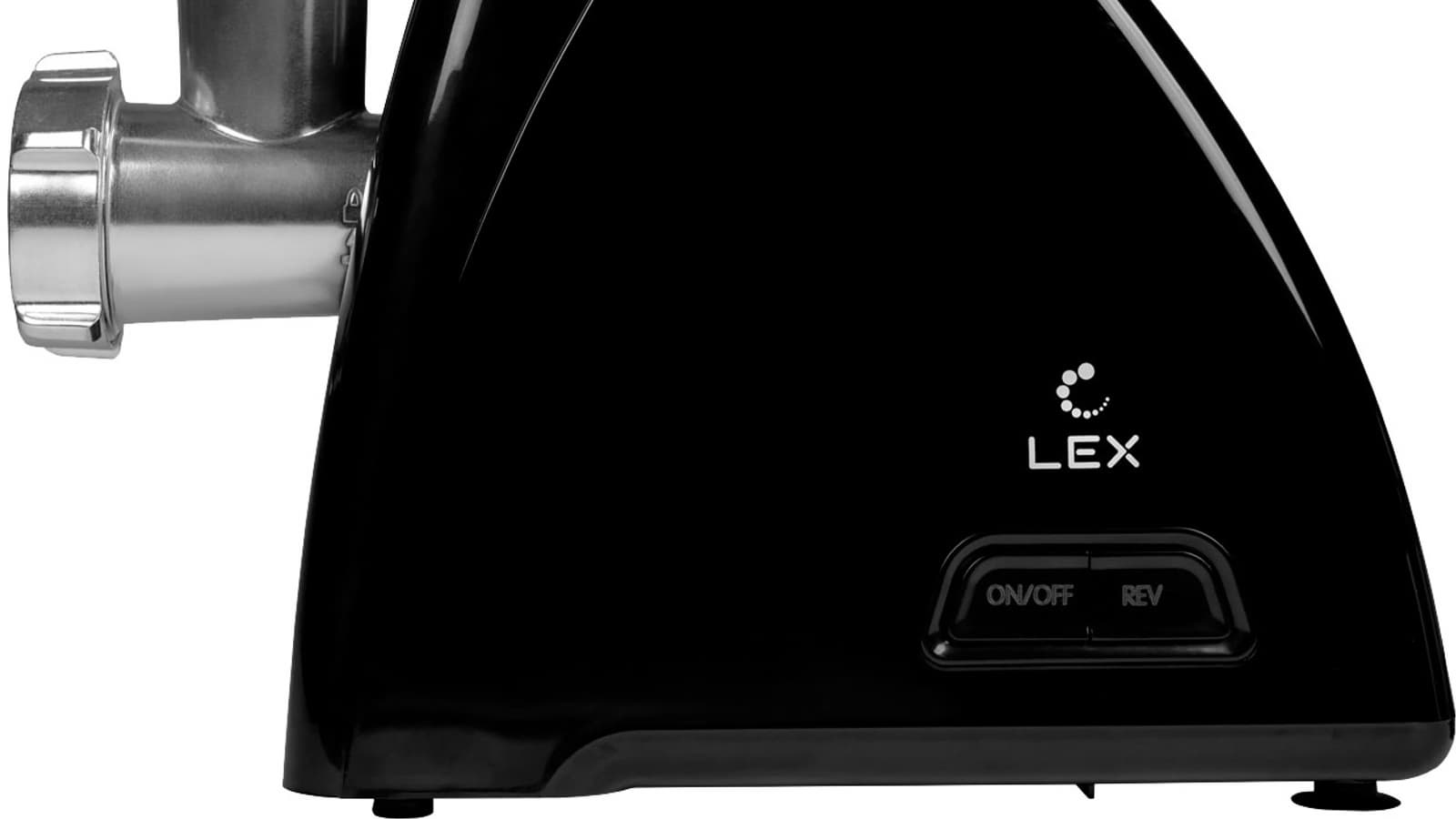 LX-4001-1 выглядит строго и симпатично. Корпус мясорубки выполненный из черного глянцевого пластика имеет традиционную форму трапеции и приятные глазу плавные линии.