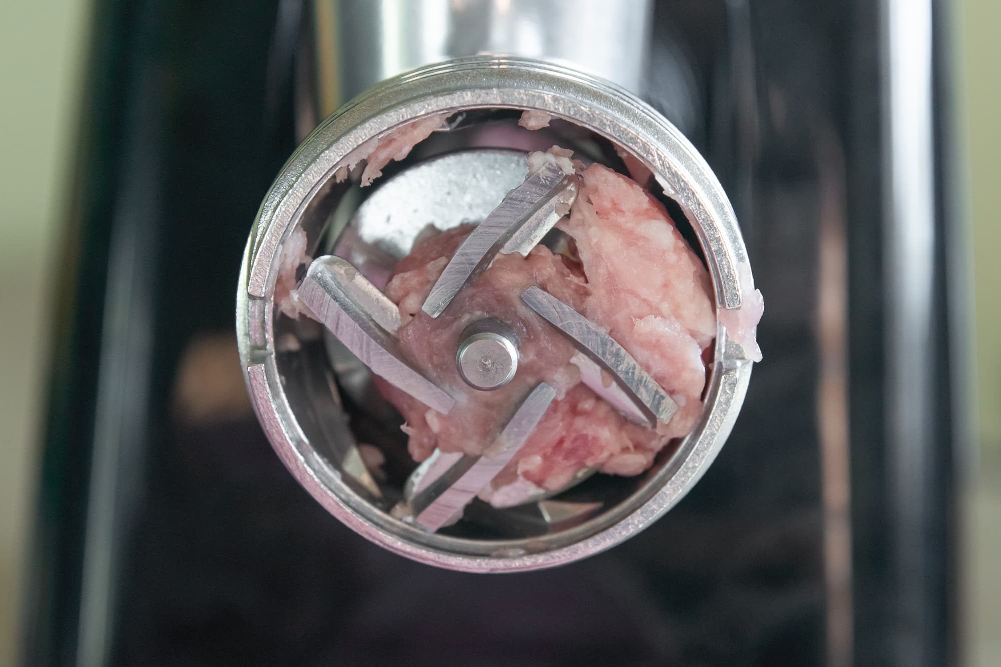 Мясо было хорошо нарублено, в целом помол можно назвать равномерным, за исключением незначительного количества не до конца перемолотых фрагментов (5 г) в готовом фарше. За ножом обнаружилось около 15 граммов не размолотого мяса.