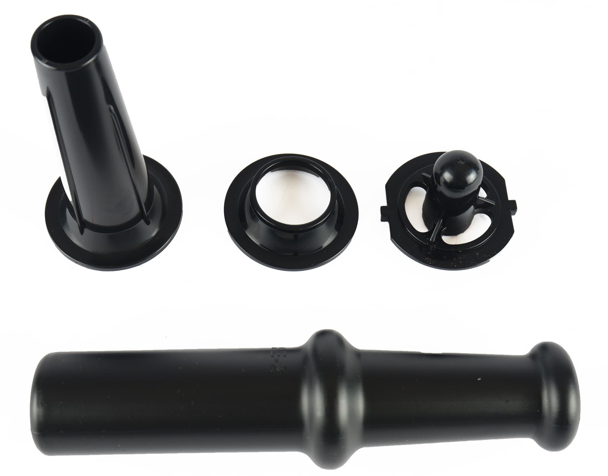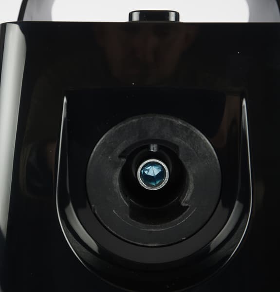 Спереди находится байонетный разъем с металлическим штырем для установки горловины и шнека. Фиксация горловины осуществляется поворотом ее против часовой стрелки, до щелчка. Демонтаж — нажатием на кнопку на корпусе и поворотом по часовой стрелке. Шнек крепится к корпусу надежно.