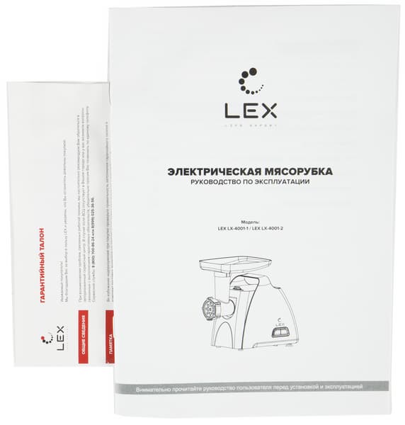 Документ разработан для двух моделей мясорубок Lex: LX-4001-1 и LX-4001-2. Руководство содержит требования по мерам безопасности при использовании прибора, указания по сборке и эксплуатации, а также по уходу за устройством. Описание использования прибора при приготовлении фарша, зраз и колбасок снабжено понятными рисунками и указанием шагов сборки/разборки устройства. На последней странице инструкции находится таблица с рекомендациями по устранению неисправностей.