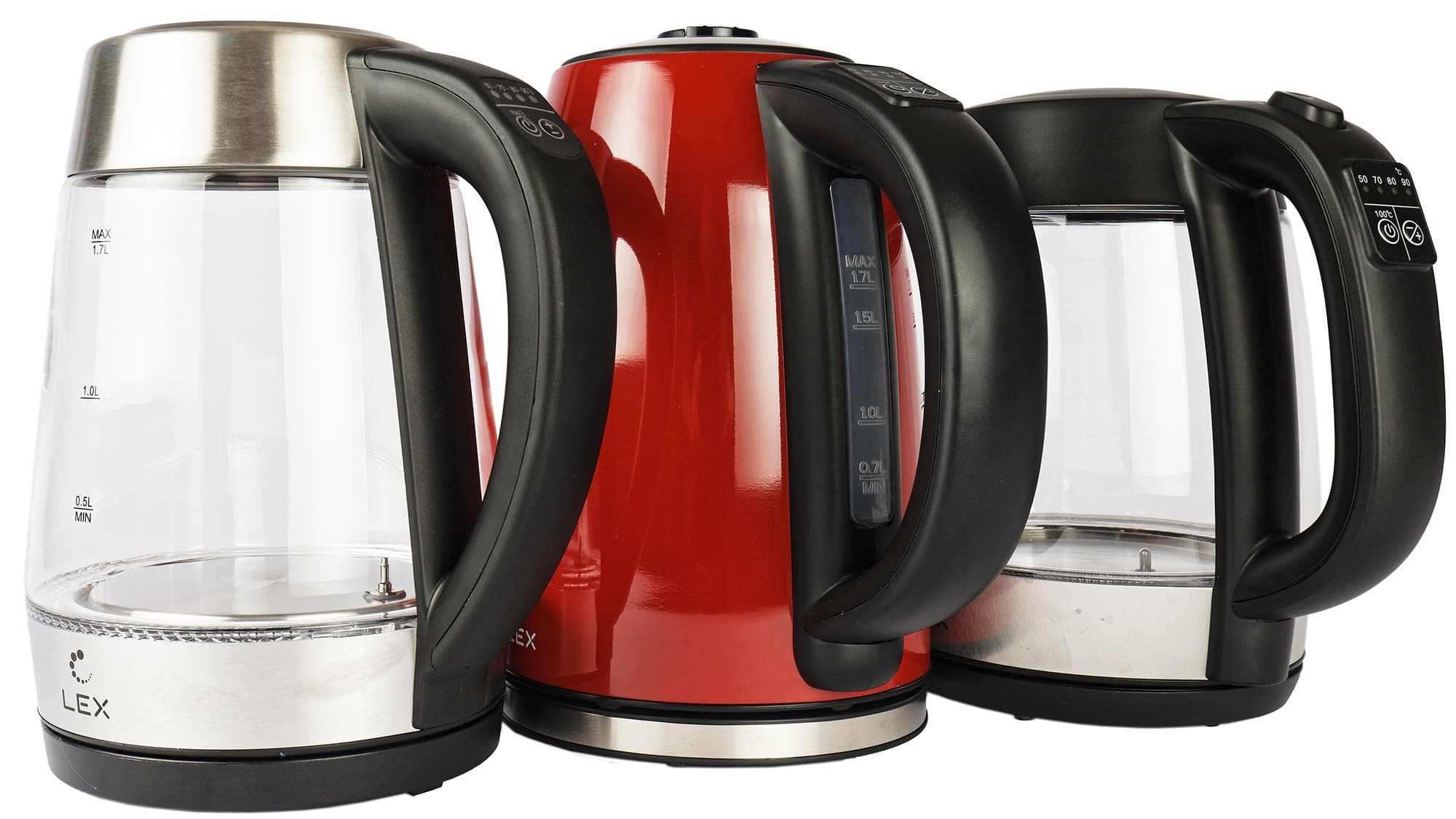 В этом обзоре мы рассмотрим сразу три чайника Lex: LX30012-1, LX30021-2 и LX30011-1. Их объединяет то, что все они умеют не только кипятить воду, но и нагревать ее до заданной температуры. Еще у них одинаковые объем и мощность.
