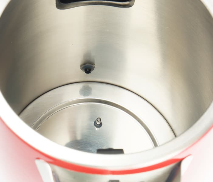 Нагревательный элемент у LX 30021-2 скрытого типа. Внутри емкости на дне можно видеть металлический колпачок термодатчика, а на стенках — отверстия индикатора уровня.