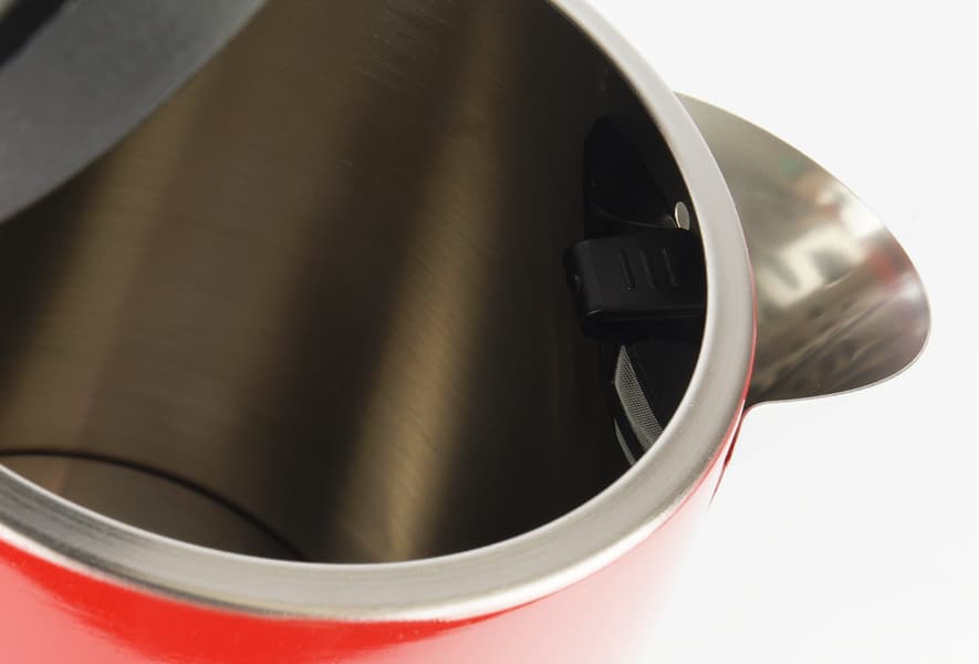 Металлический носик приклеен к верхней части корпуса. Внутри колбы, перед решеткой выливного отверстия, расположен съемный фильтр против накипи: металлическая сетка в пластиковой рамке.
