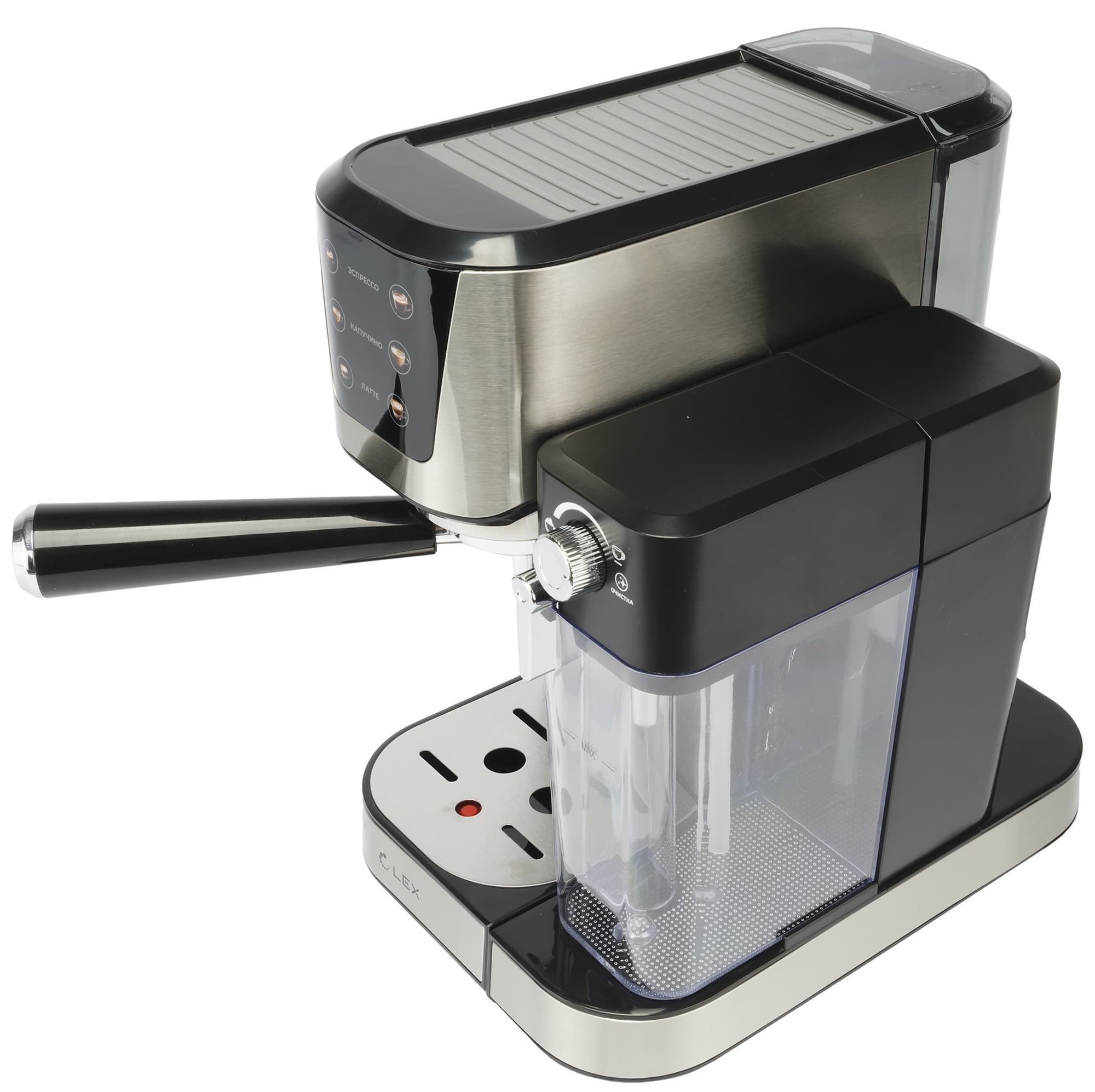 Кофеварка Lex LXCM 3507-1 при приготовлении и капучино, и латте сначала подает в чашку вспененное молоко, а затем добавляет эспрессо. Для капучино такой порядок считается некорректным, тогда как для латте он вполне уместен.